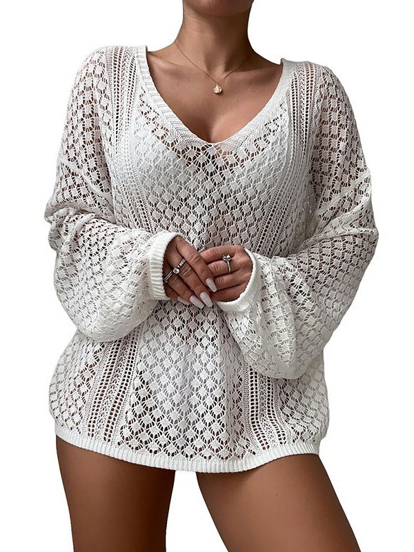 Athvotar Athvotar New Beach Hooded Knitted Loose Long-Sleeved Swimsuit Sunscreen