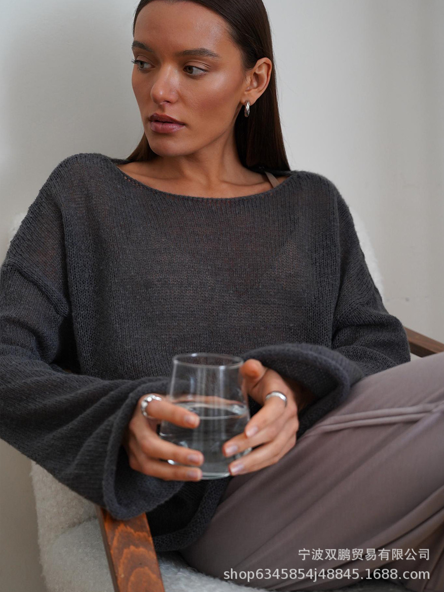 Athvotar Athvotar New Hollow Knitted Top 2025 New Round Collar Perspective Thin Sweater Woman