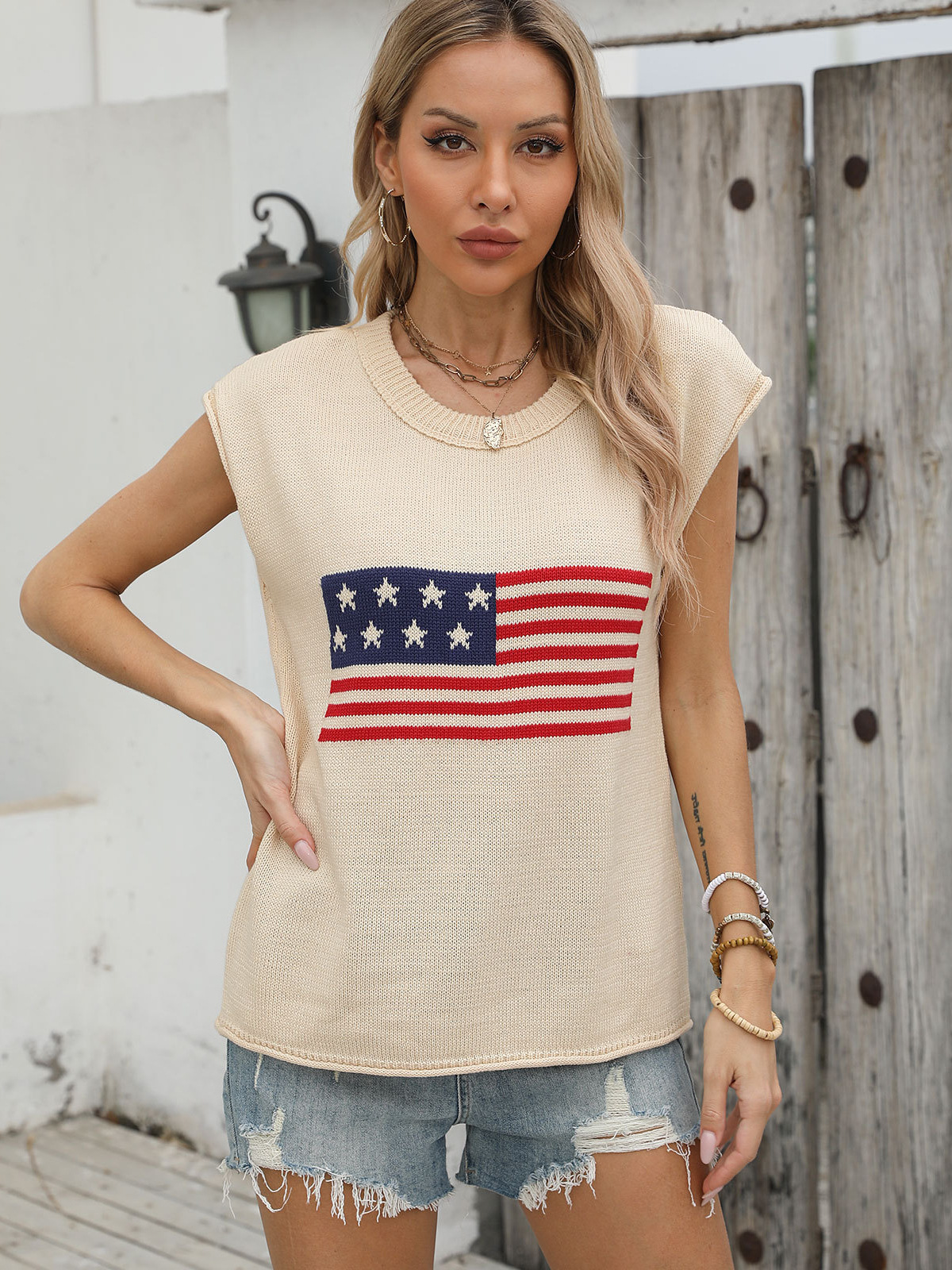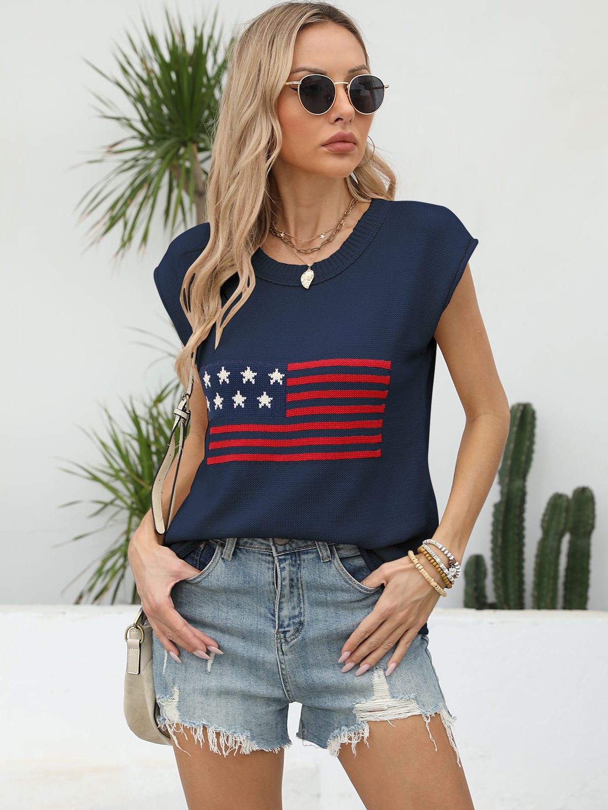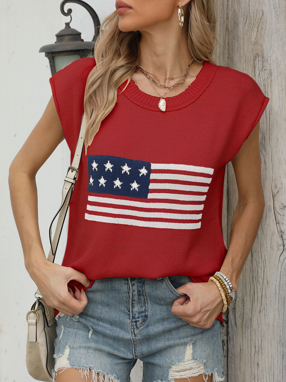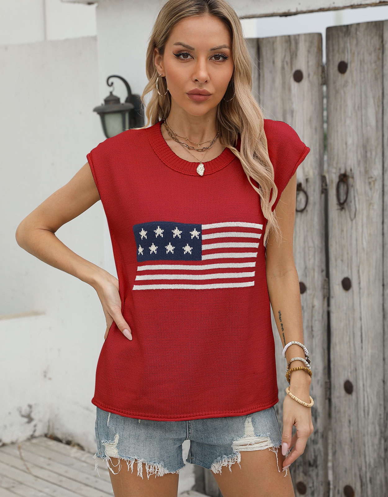 Athvotar Athvotar New Hot Independent Yen Collar Flag Top Solid Color Knit Shirt Short-Sleeved Sweater Woman