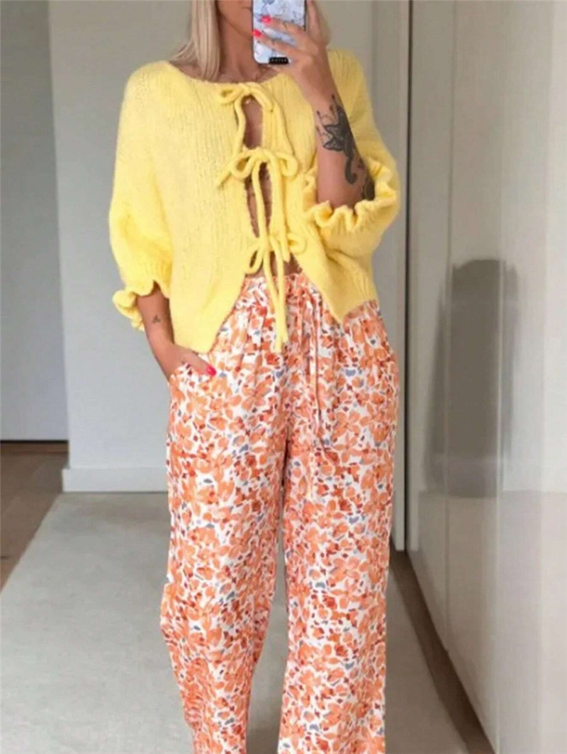 Athvotar Athvotar New Round Tie Nine-Sleeve Rope With Knitted Sweater Lazy Wind Coat