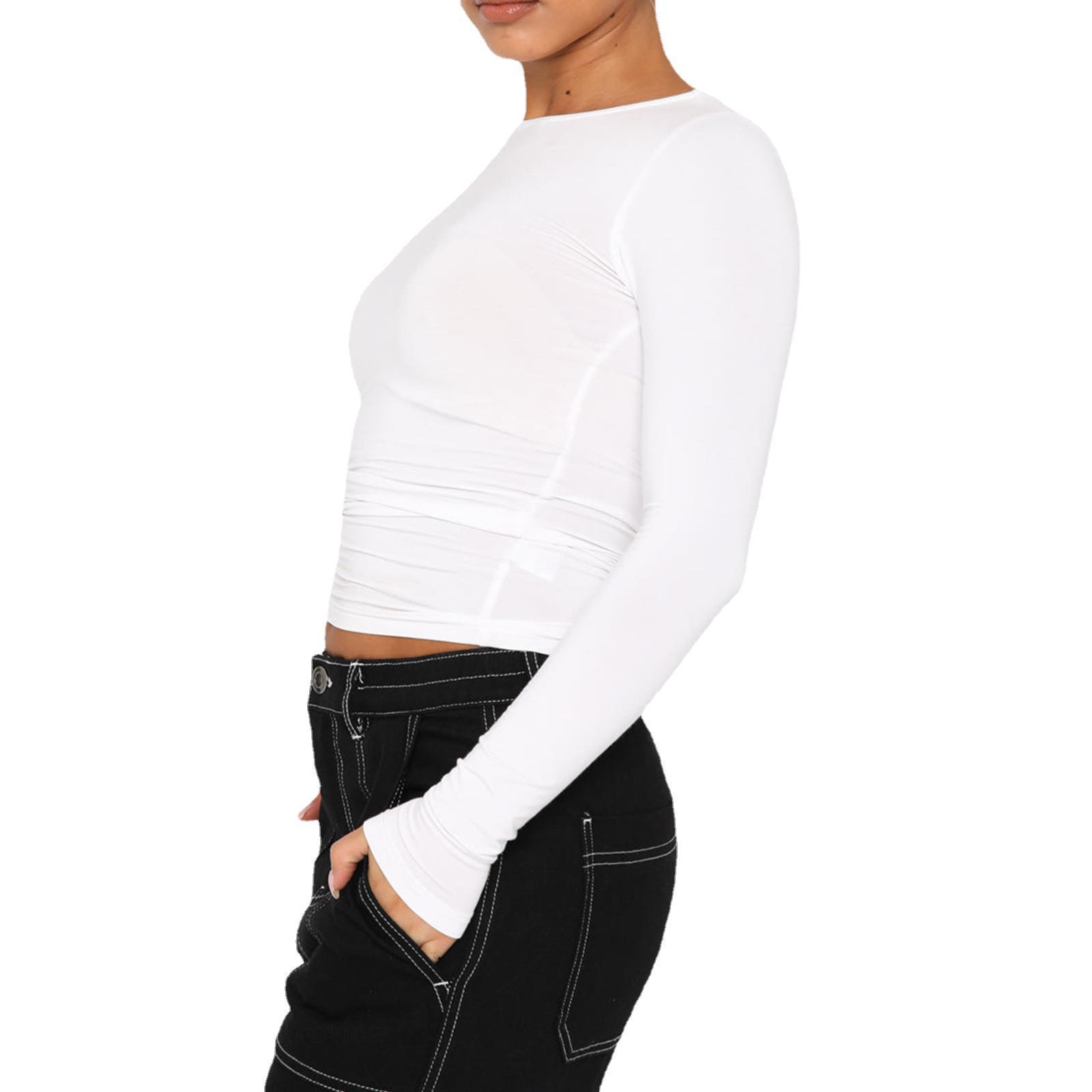 Athvotar Athvotar New Set-Up Bottom Shirt For Women Winter Solid Color Bottom Collar T-Shirt Sexy Hot Girl Slim Thin Long Sleeves