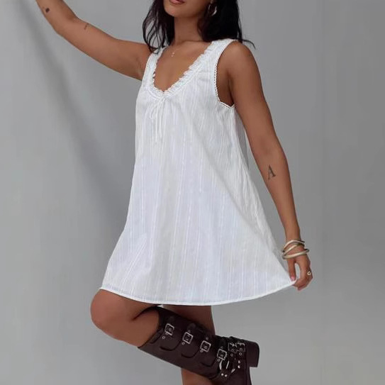 Athvotar Athvotar New Spring And Summer Sexy Lace Spliced Bow Vest Doll Dress