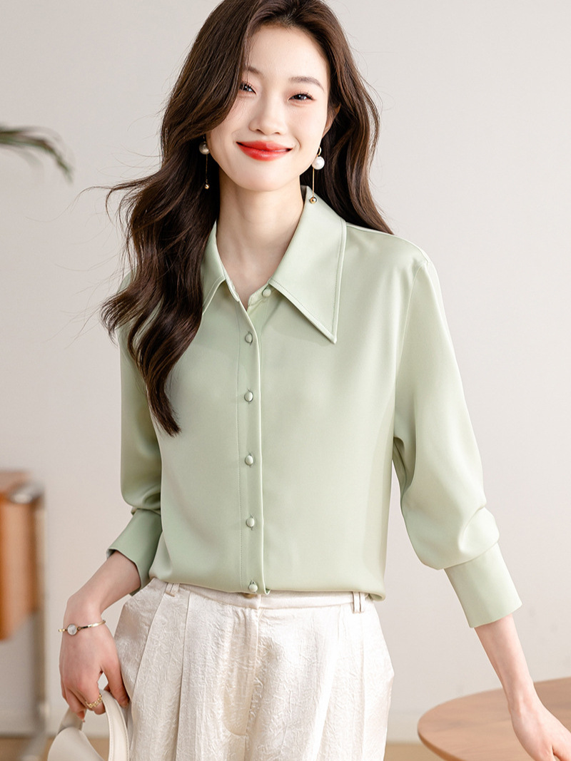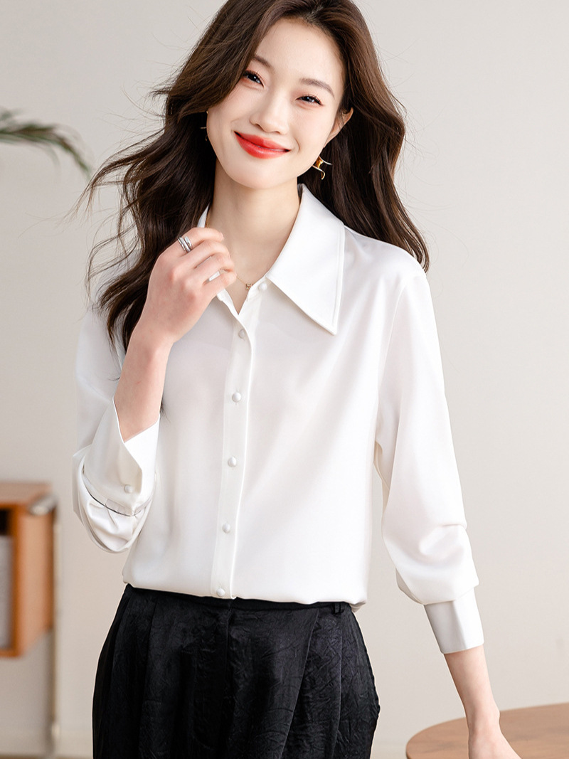 Athvotar Athvotar New Spring Day Overture White Long-Sleeved Set Of Sleeves Of The Maid's Spring Temperament OL Shirt