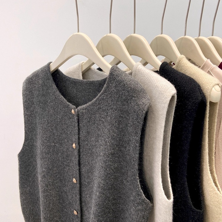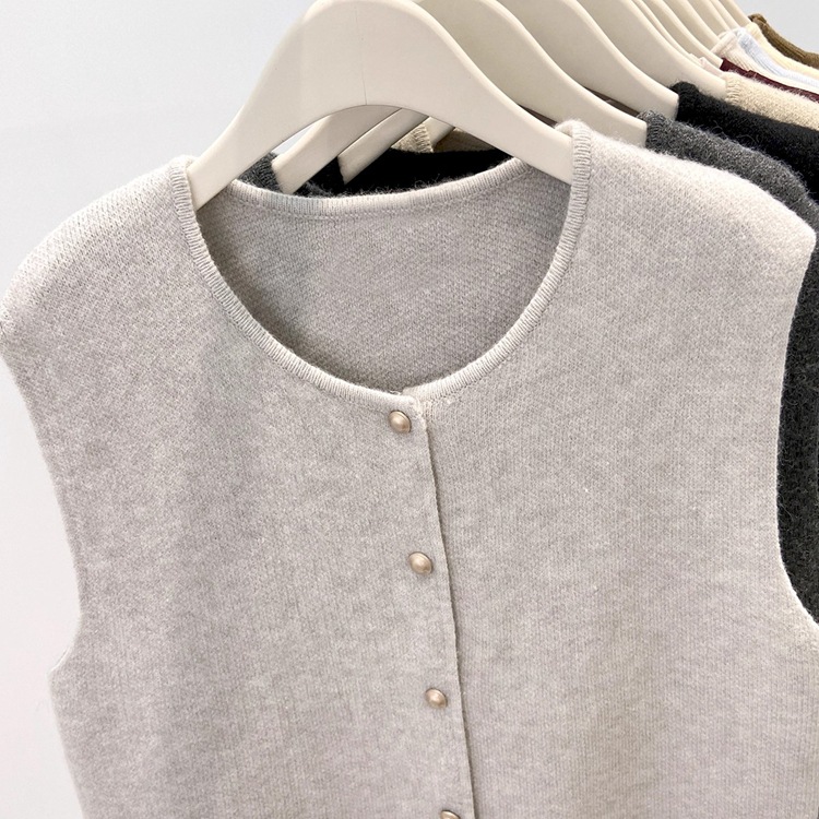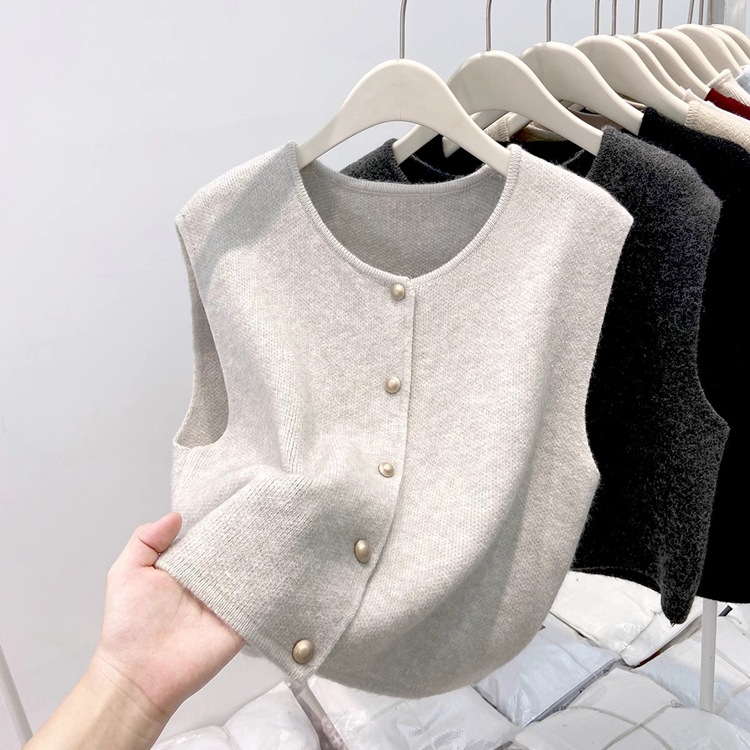 Athvotar Athvotar Old Money Style Casual Folded Round-Necked Vest Vest Women's Winter Sweater Coat Knitted Shoulder Coat