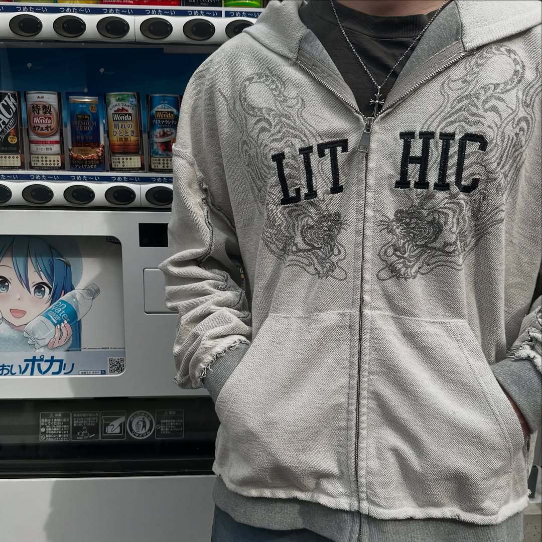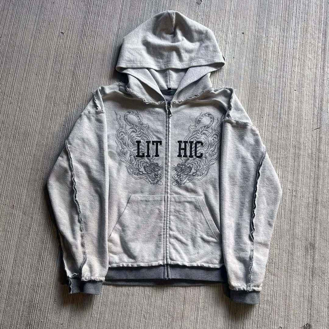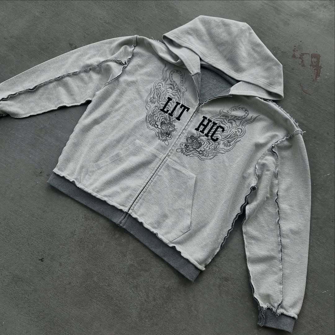 Athvotar Athvotar Personality Zippered Sweatet Double-Layer Fake Two-Piece Hooded Jacket Trendy Street Casual Sweating