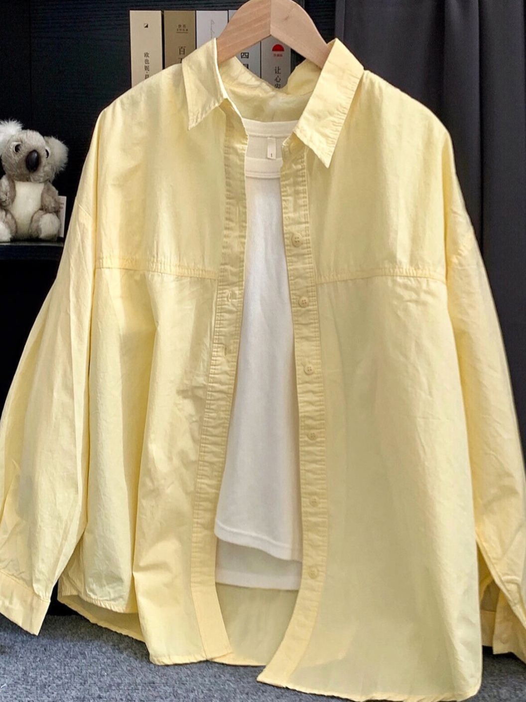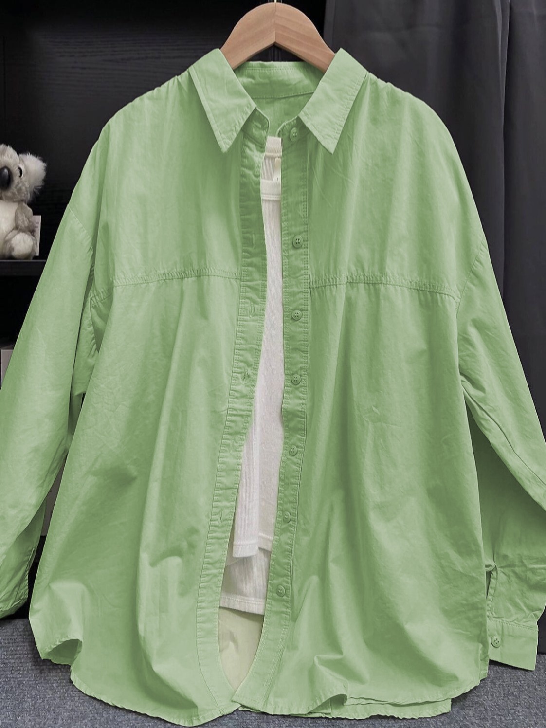Athvotar Athvotar Pink Folded Long-Sleeved Shirt Coat Women's Spring Thin Loose BF Lazy Wind Long Casual Top