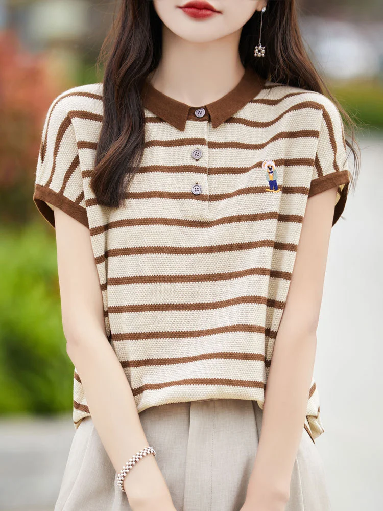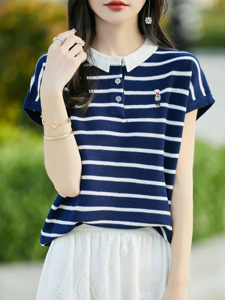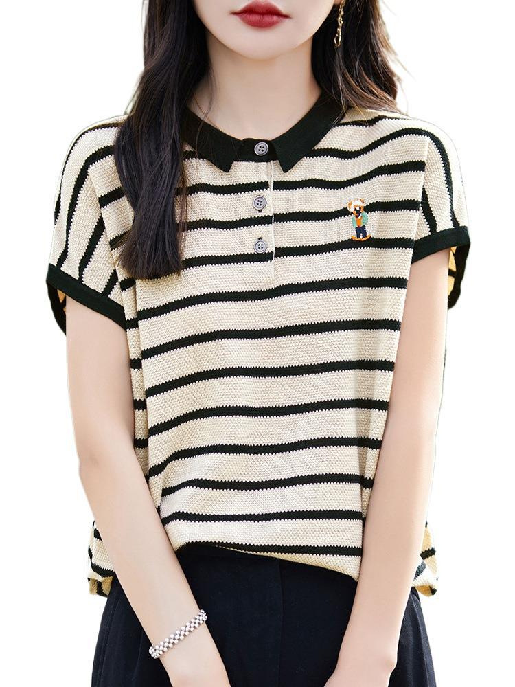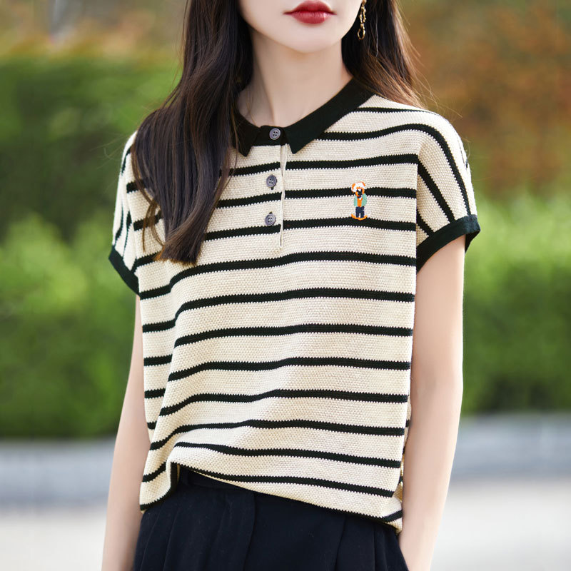 Athvotar Athvotar Polo Collar Short-Sleeved T-Shirt Women's 2025 New Fine-Spinning Wool Embroidered Age-Down Knitted Vest Top