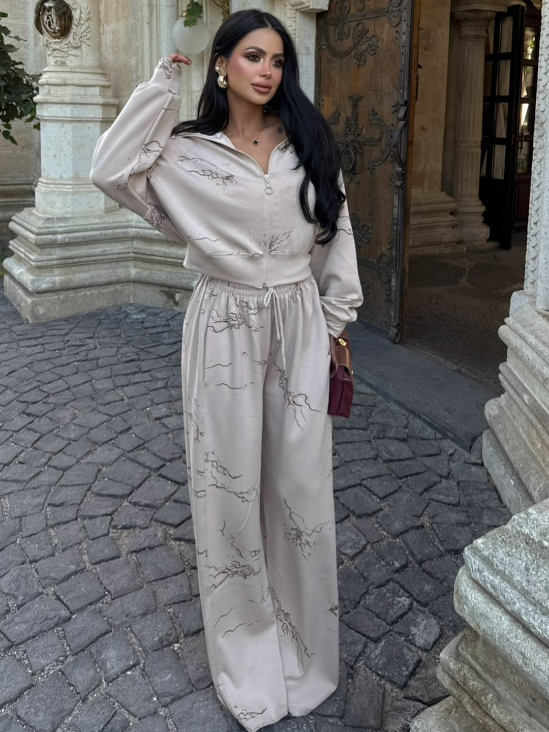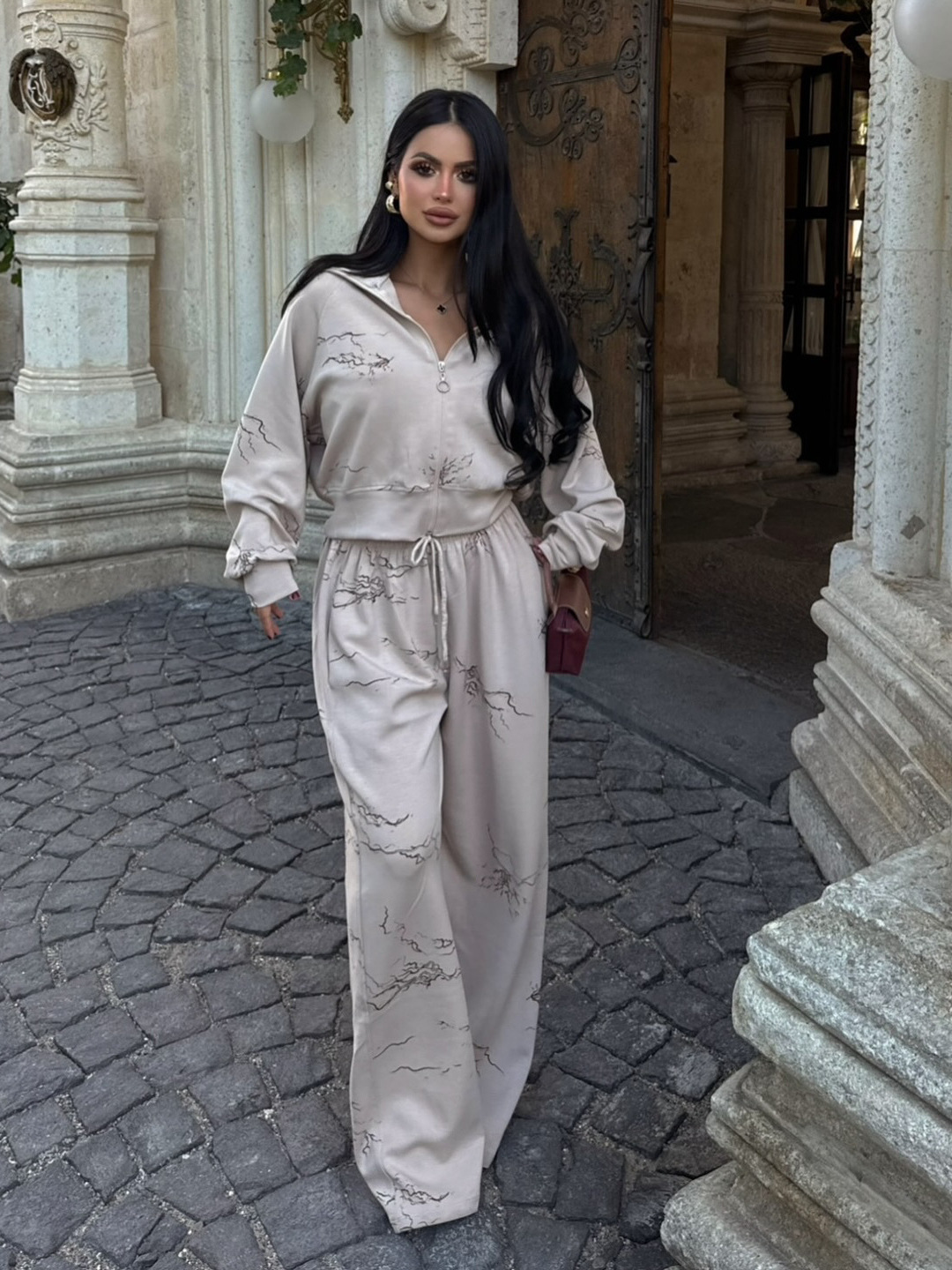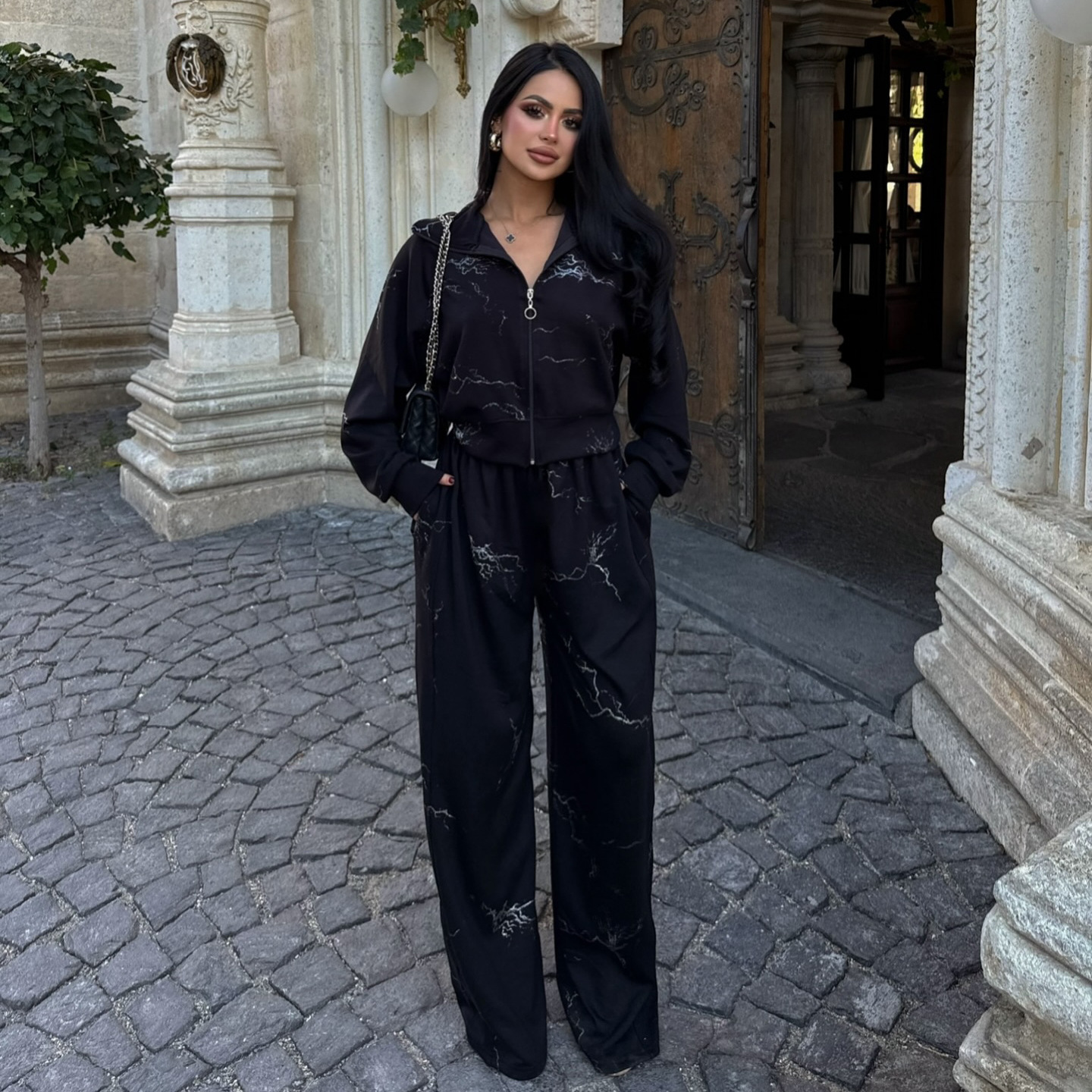 Athvotar Athvotar Push Branch Print Hooded Jacket Set Black And White Optional Loose Version Of Ultra-Comfortable Fashion Woman