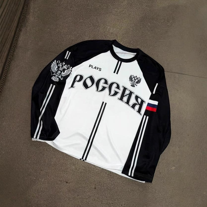 Athvotar Athvotar Retro Flag Aesthetic Long-Sleeved Jersey T-Shirt Y2k Loose Sports High Street Collar Top