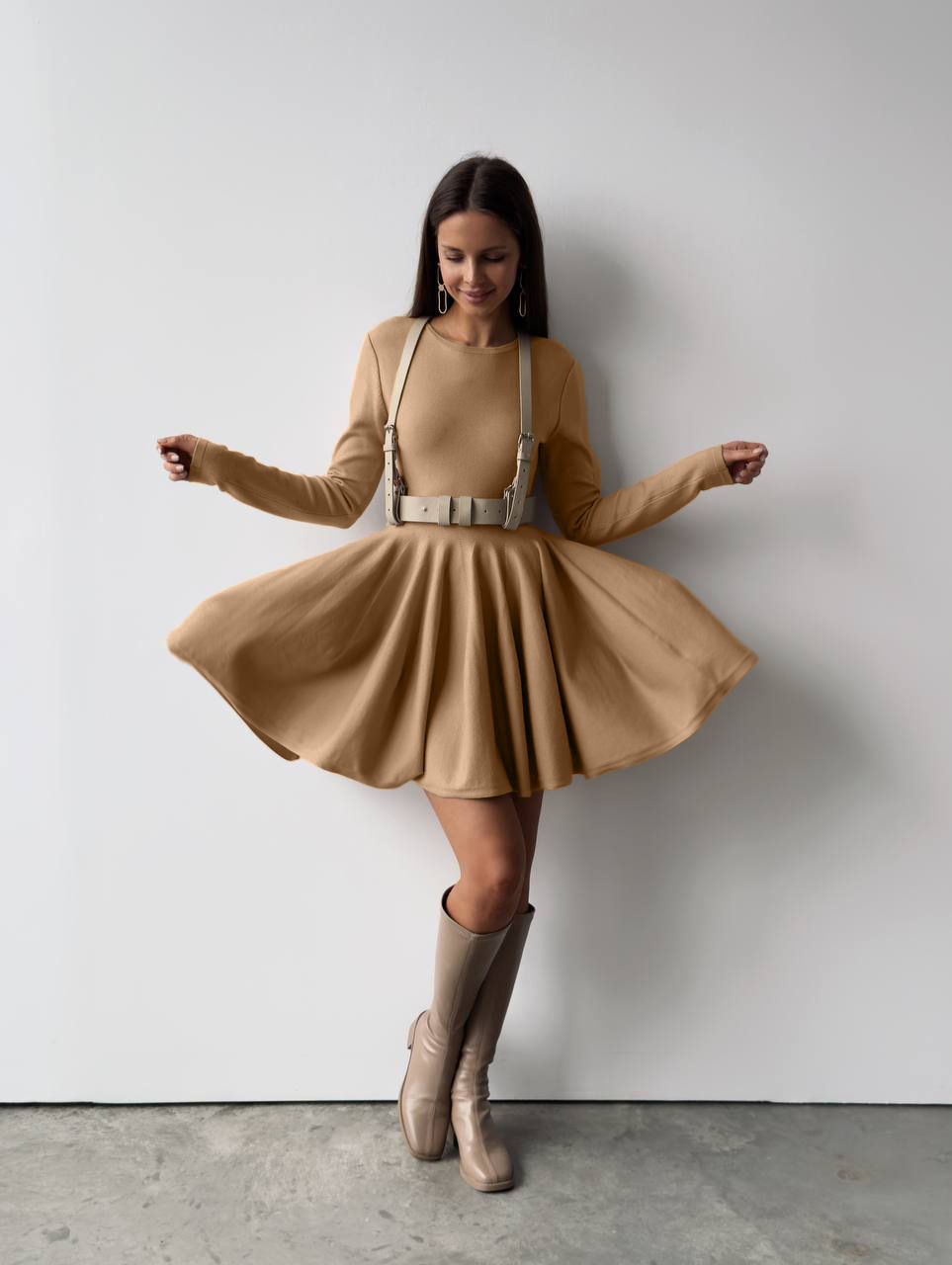 Athvotar Athvotar Round Collar Waist Knitted Dress Women's High-End Ins Windy Folded Sweater Dress