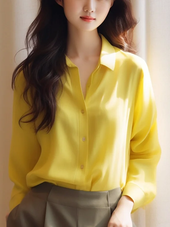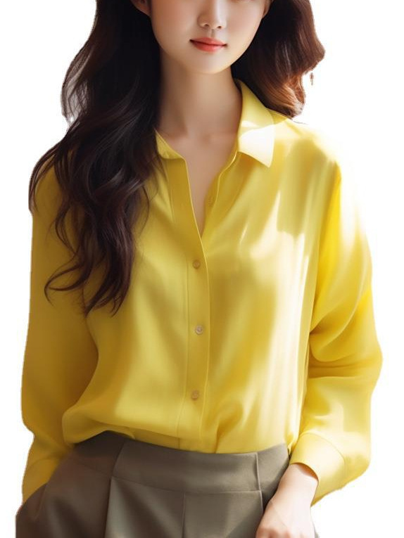 Athvotar Athvotar Sense Gentle Windy Yellow Beautiful Shirt Simple Commute Small Fashion Age-Dense Stated Set-Tite Shirt Woman