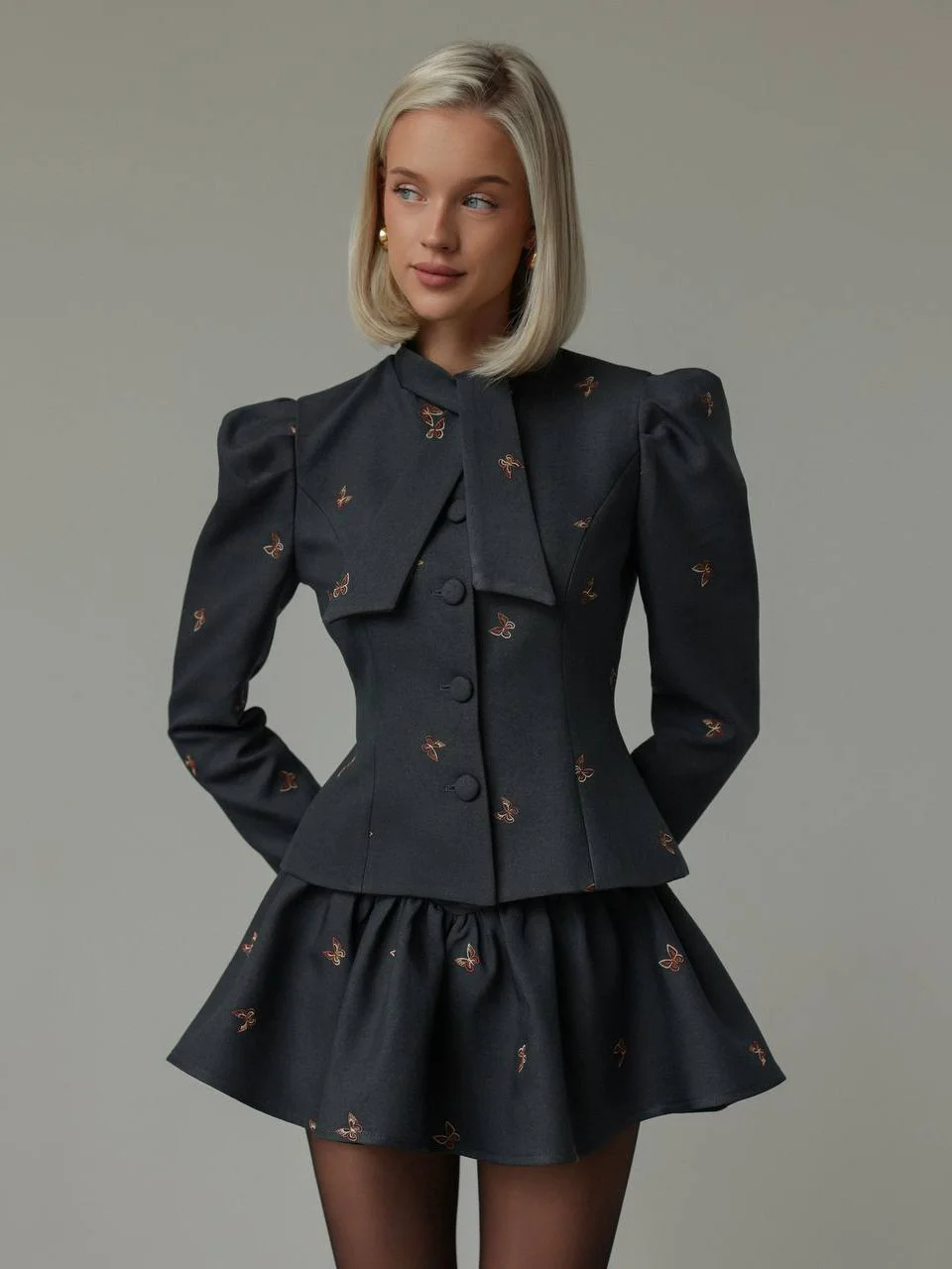 Athvotar Athvotar Sense Of Color Butterfly Embroidery Suit Women's High-End Spring And Autumn New Waist-High Set Dress