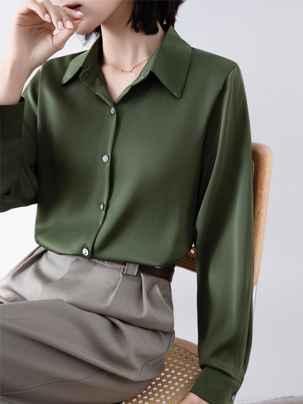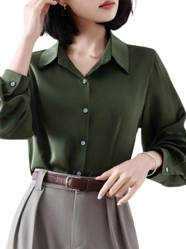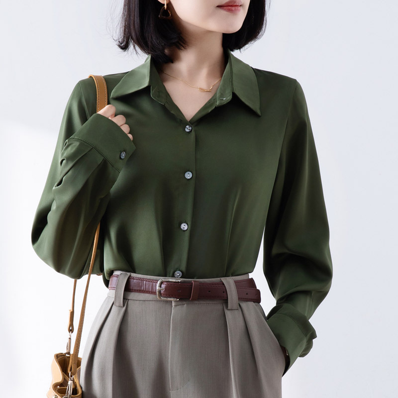 Athvotar Athvotar Shirt Woman Spring New Career OL Hanging Commuting Olive Green Shirt Workplace Interview Long-Sleeved Top