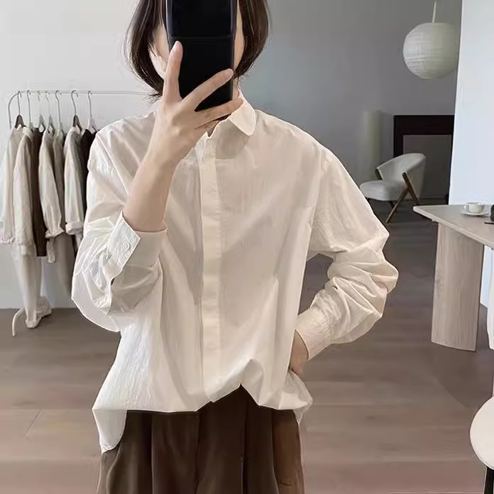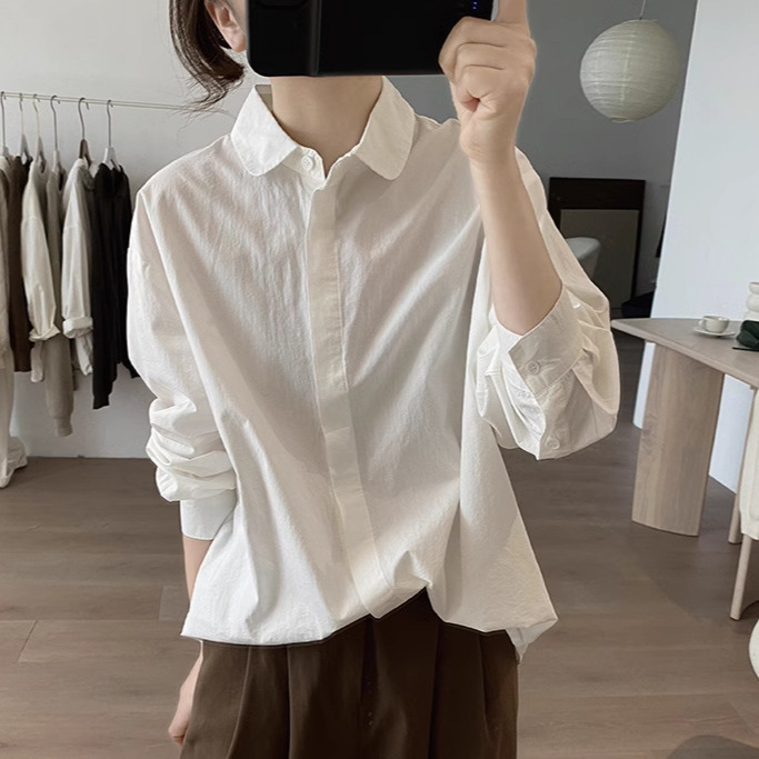 Athvotar Athvotar Shirt Women's Spring And Autumn New Loose Thin Korean Version Of Age-Reduction Long-Sleeved Basic Simple Solid Color Top