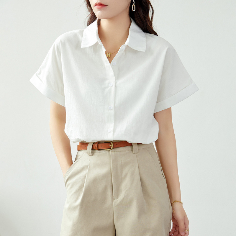 Athvotar Athvotar Short-Sleeved Shirt Women 2025 New Summer White Shirt Professional Commuter Women Wear Loose Tops