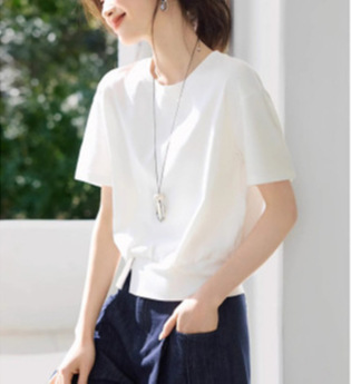 Athvotar Athvotar Short-Sleeved T-Shirt Women's Summer 2025 New Casual Design Feeling Under The Fork Decorative Buckle Clasp Blouse