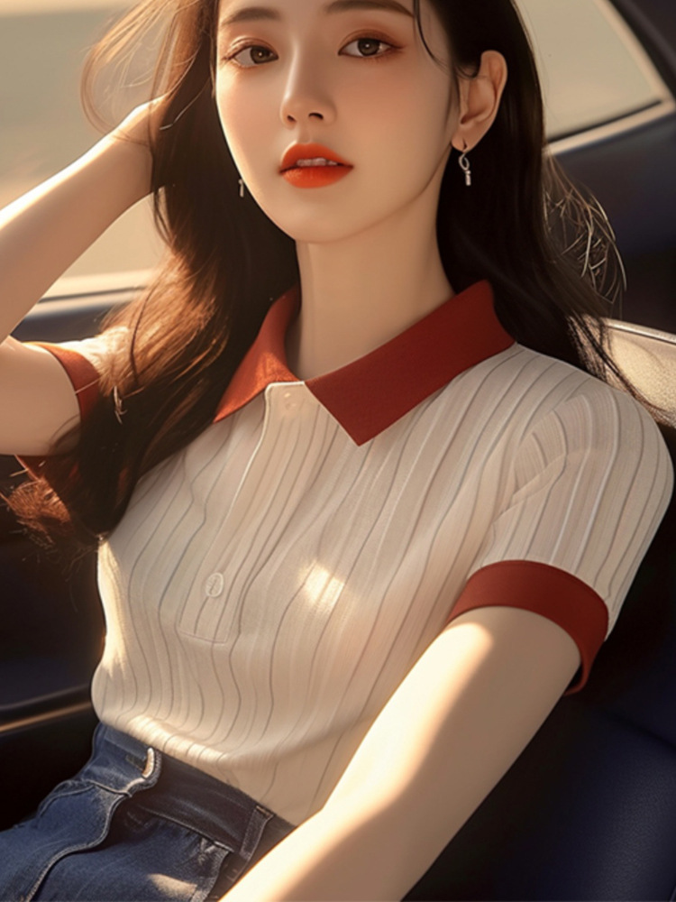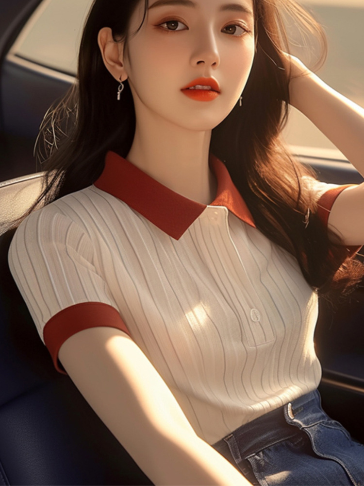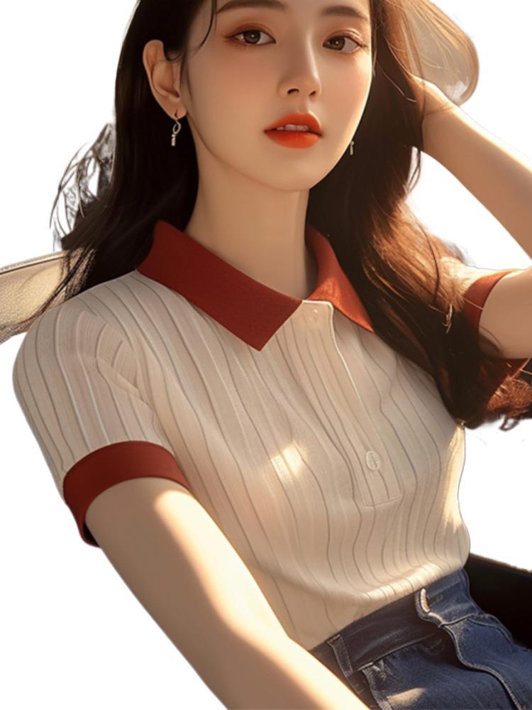 Athvotar Athvotar Simple Super Good-Looking Apricot POLO Collar Short-Sleeved T-Shirts For Women's Summer Unique Slimmed-Beauty Shirts