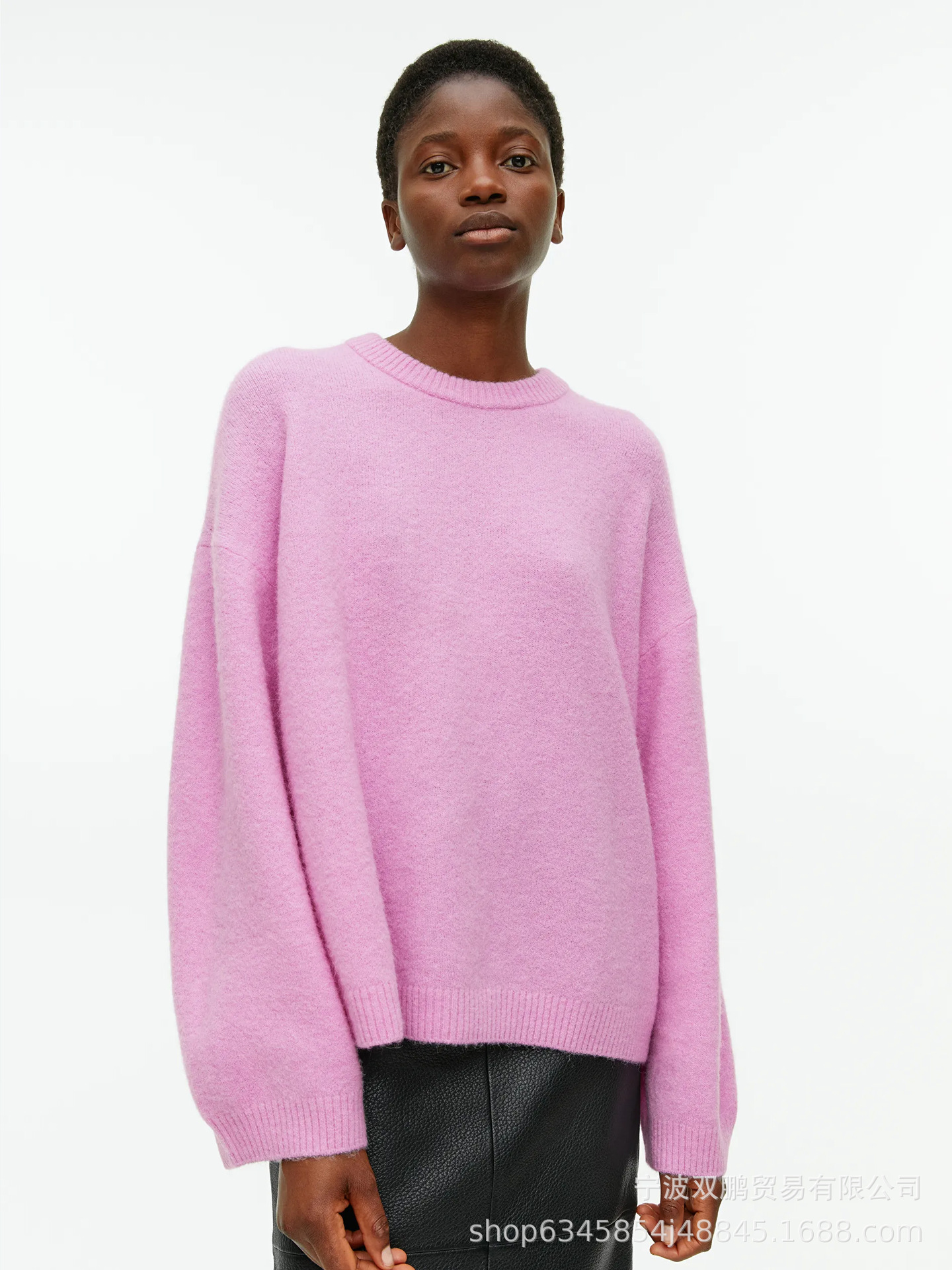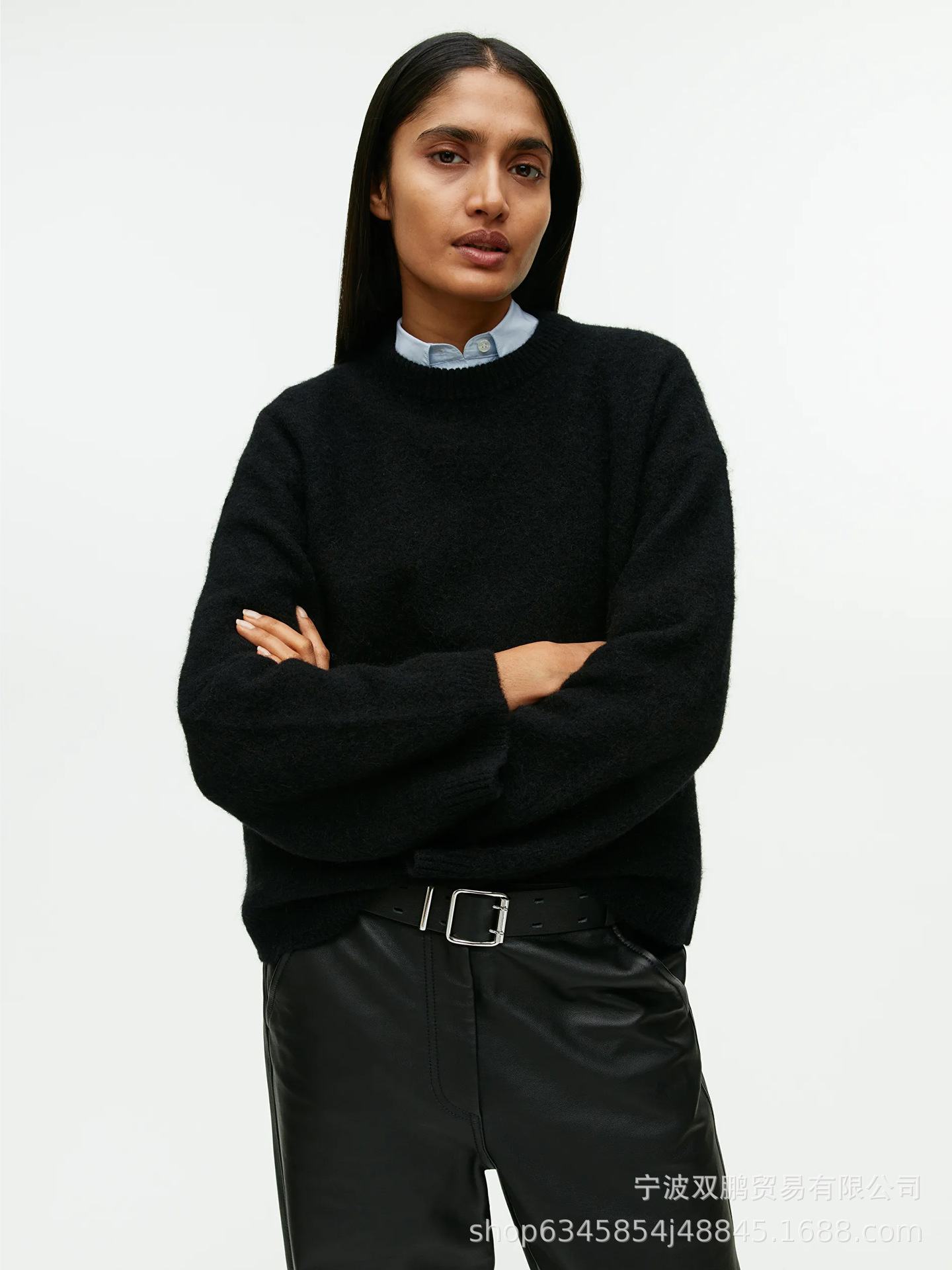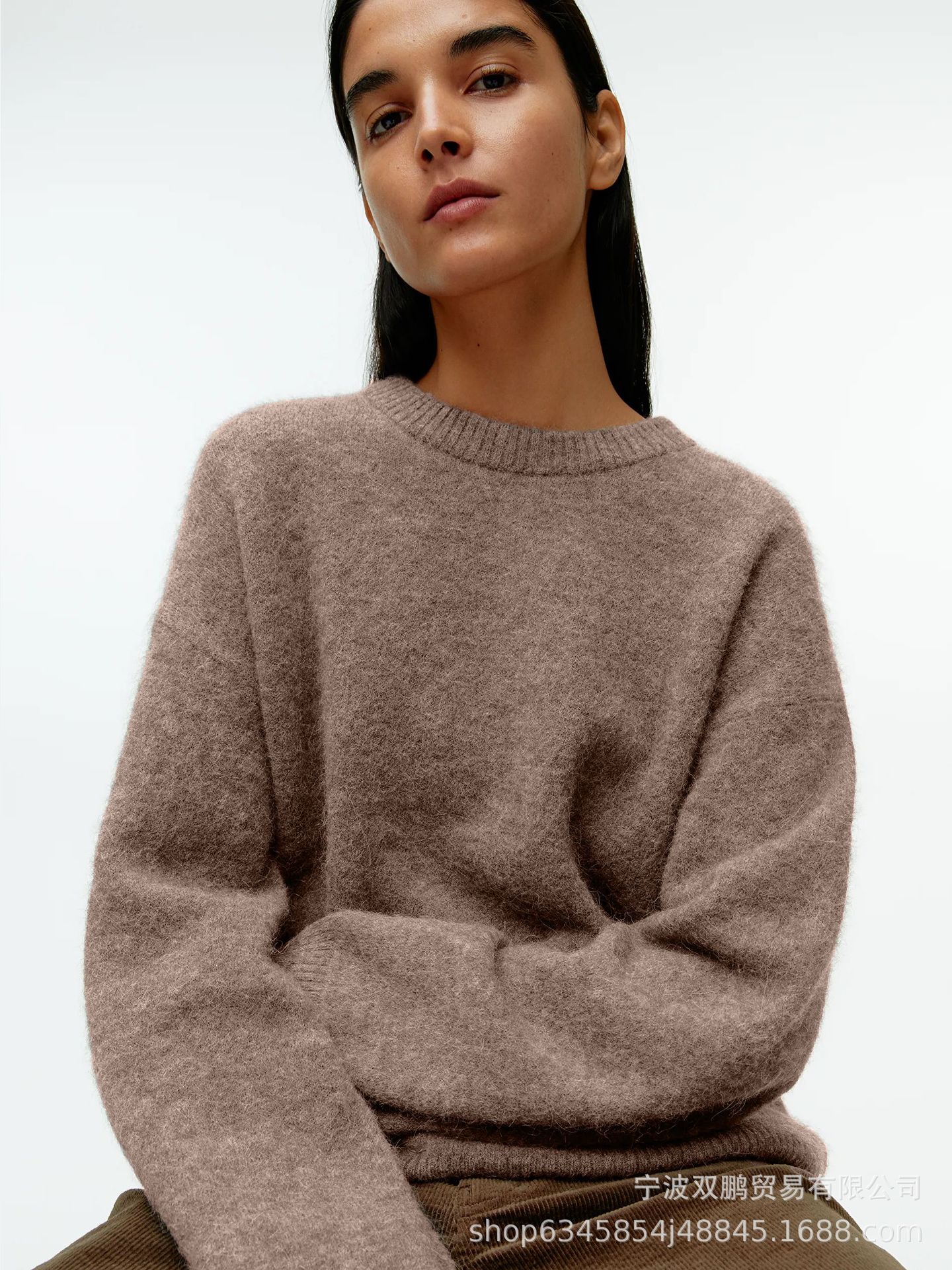 Athvotar Athvotar Soft-Gried Gray Sweater Woman 2025 Autumn And Winter Loose Thick Sheep Velvet Collar Knitted Shirt