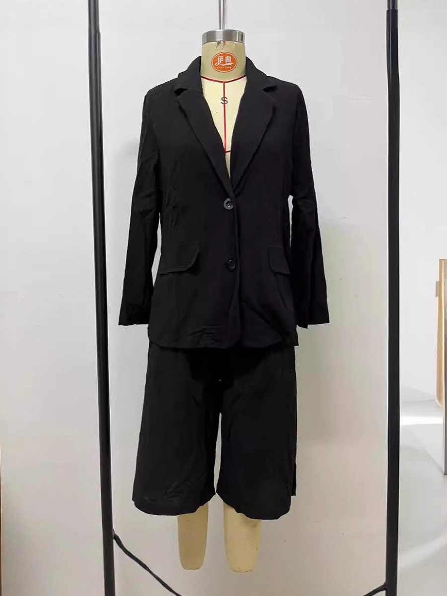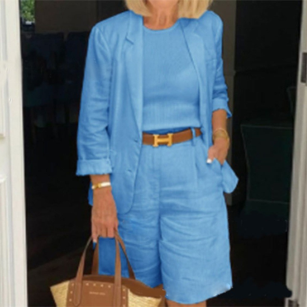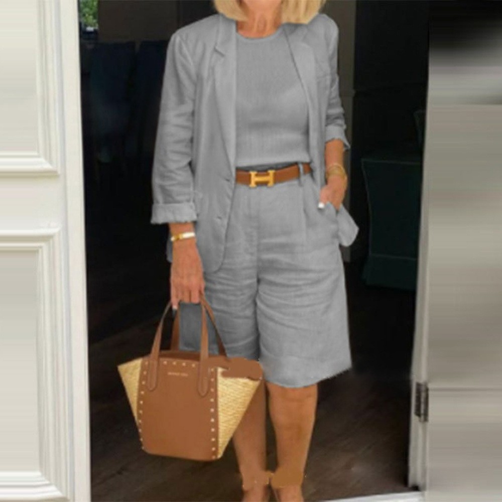 Athvotar Athvotar Spring And Autumn Cotton Mah-Size Casual Long-Sleeved Five-Sleeve Shorts Suit Two Sets