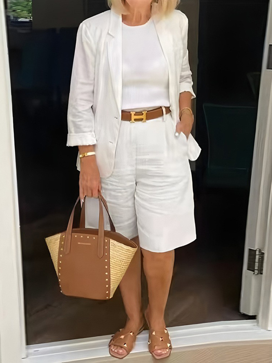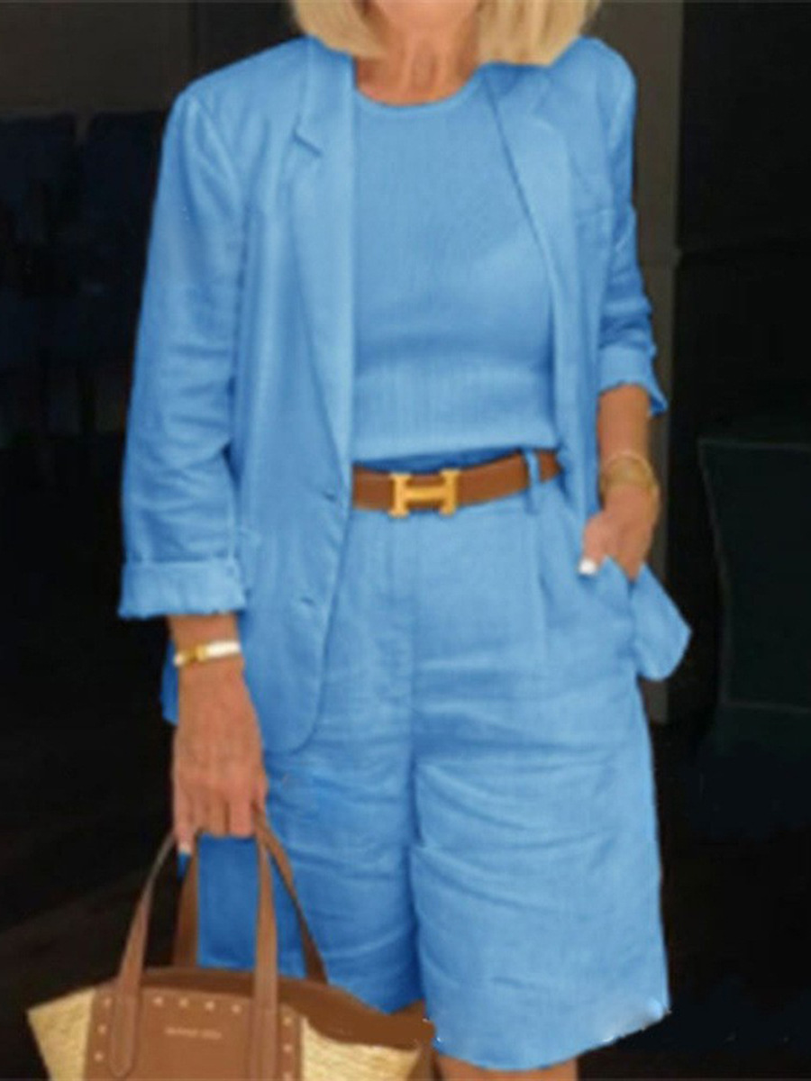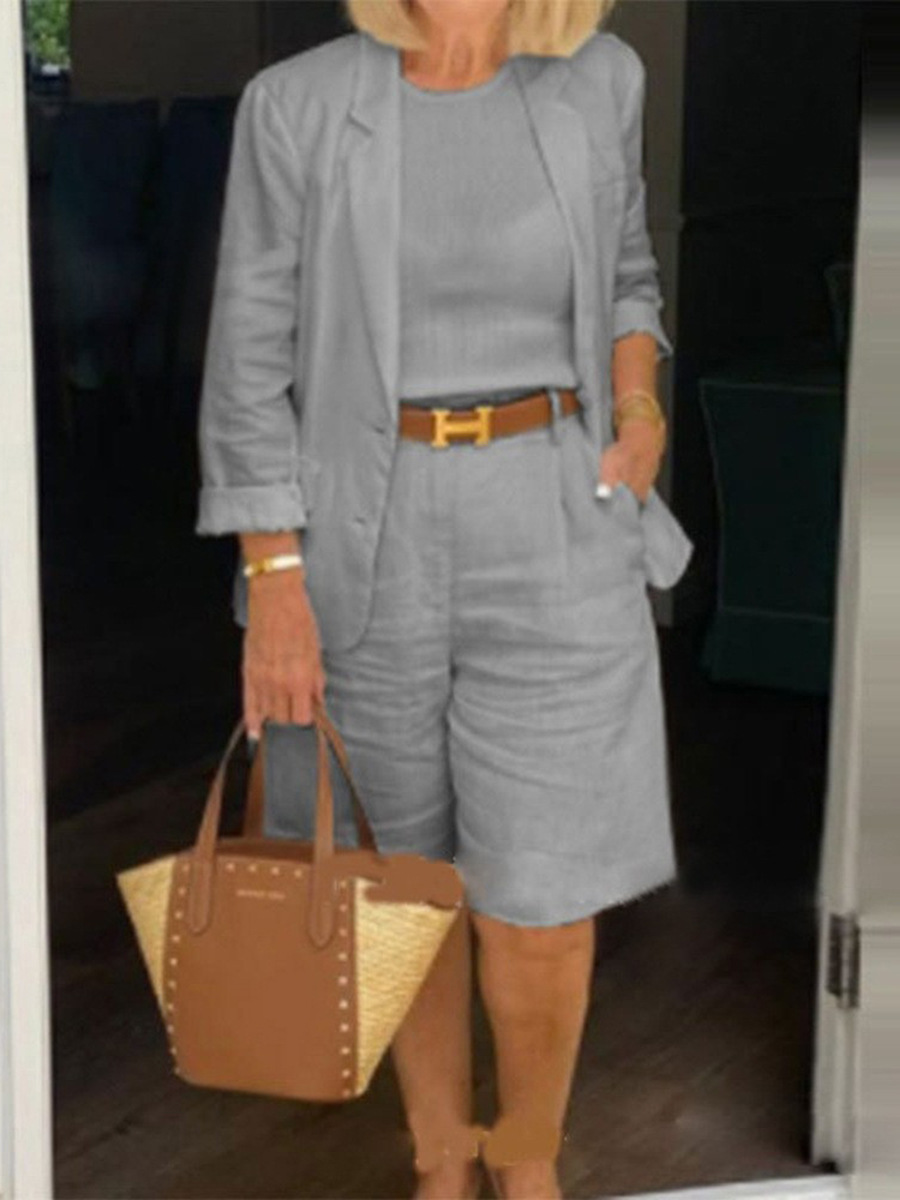 Athvotar Athvotar Spring And Autumn Cotton Mah-Size Casual Long-Sleeved Five-Sleeve Shorts Suit Two Sets