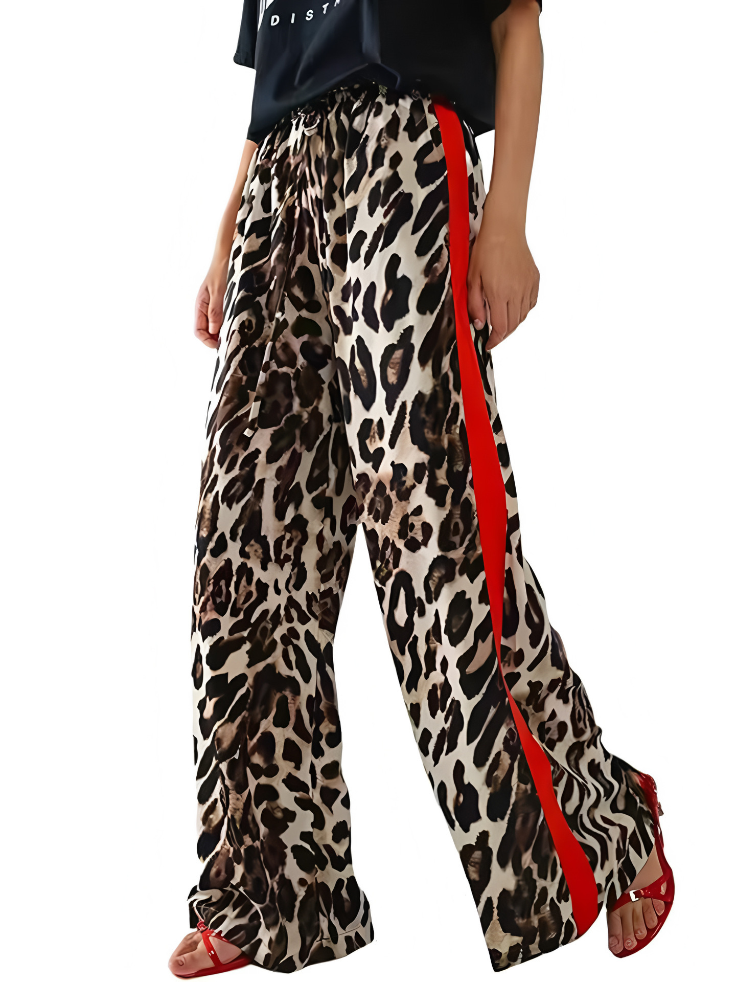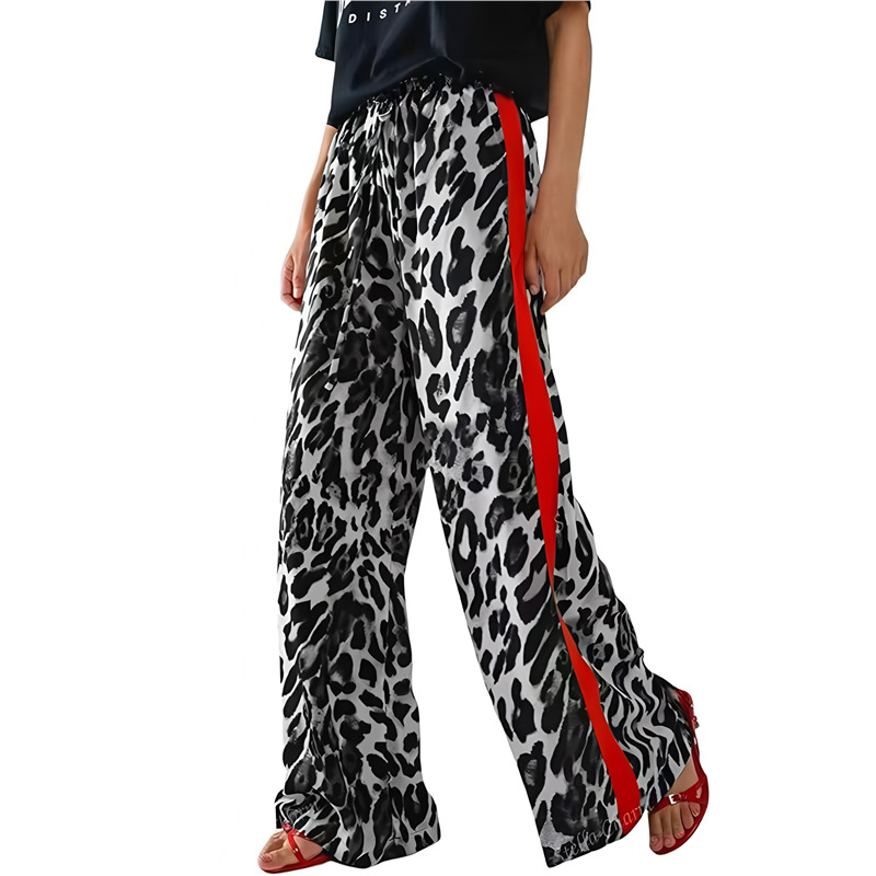 Athvotar Athvotar Spring And Autumn Women's Net Red With The Same Leopard Print Splicing Temperament Loose-Legged Trousers