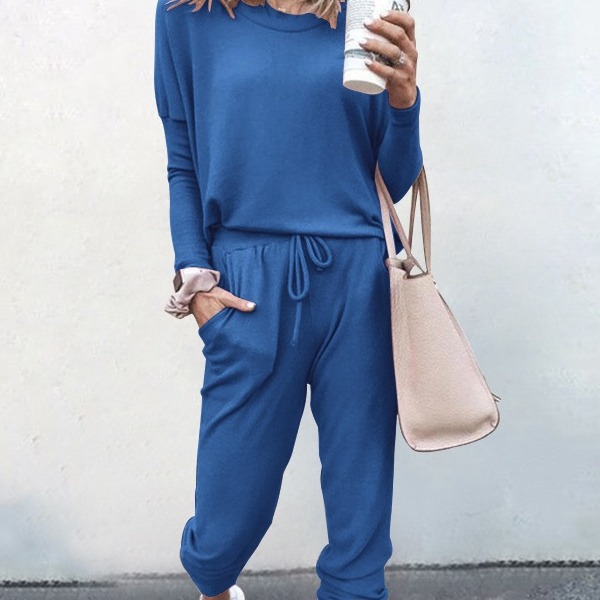 Athvotar Athvotar Spring And Autumn Women's New Women's Loose-Fitting Solid-Colored Drawstring Long-Sleeved Casual Set