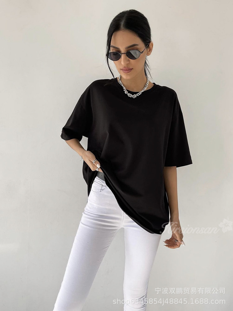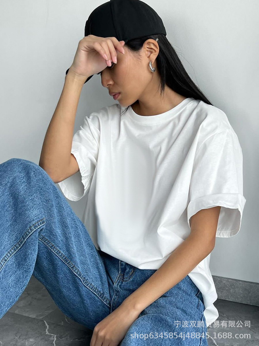 Athvotar Athvotar Spring And Summer New Solid Color Short-Sleeved Women Loose Large-Band Pure Cotton T-Shirt Simple Top