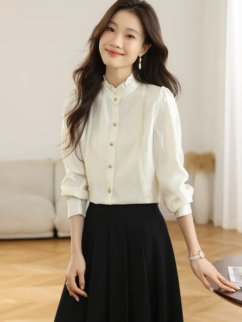Athvotar Athvotar Spring Dress New French Long-Sleeved Shirt Women's Lace Collar Chic Commuter Blouse Fashion Shirt Tide