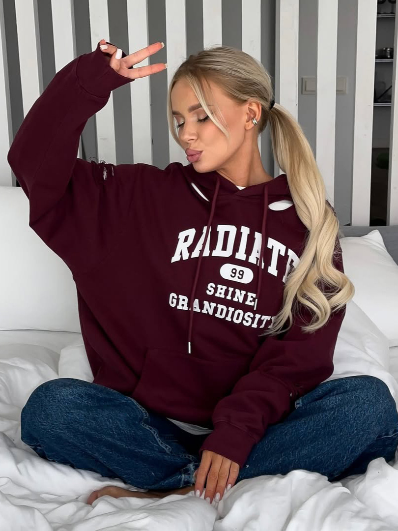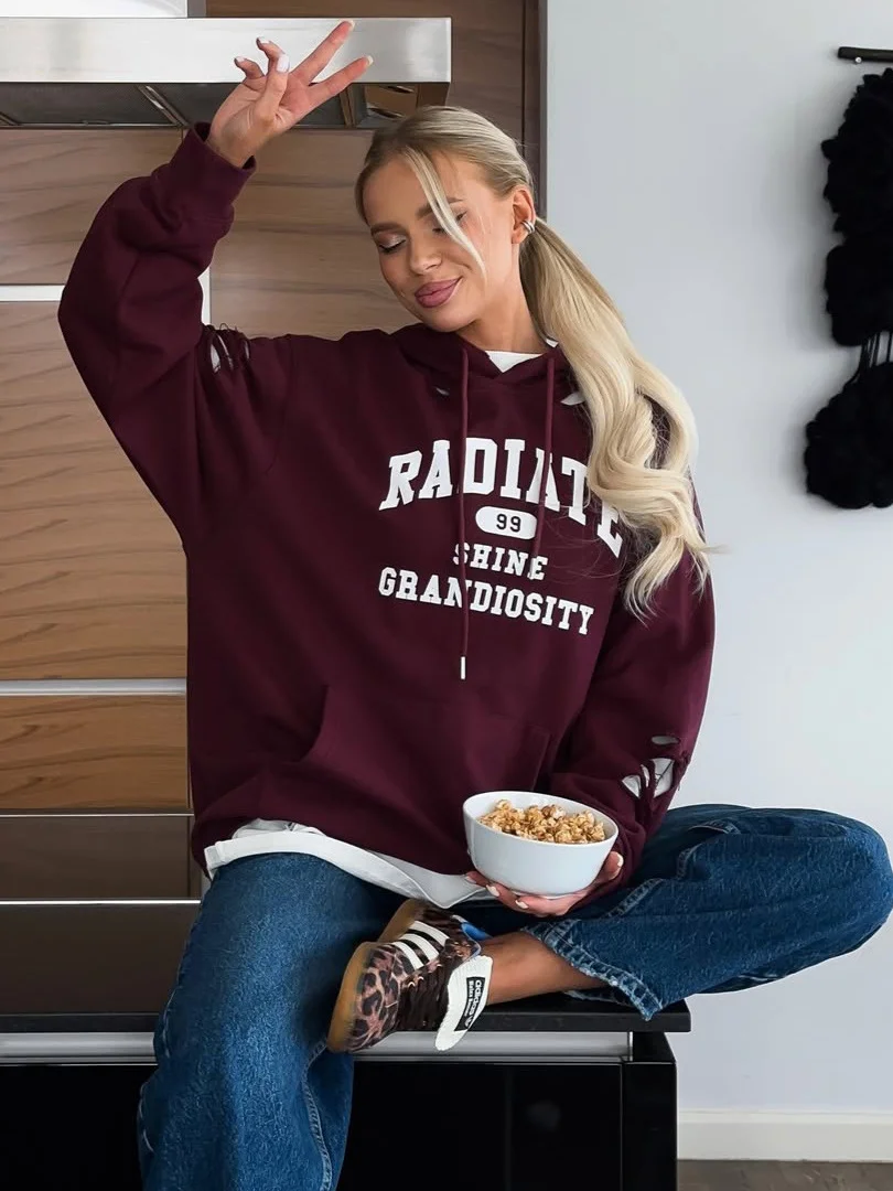 Athvotar Athvotar Style Retro Hottie Letter Print Dress Girl Spring New Rotten Hooded Loose Top