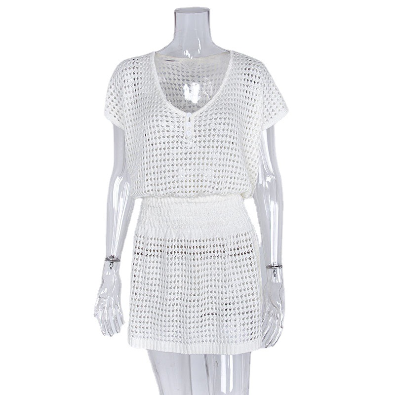 Athvotar Athvotar Suit New Loose Solid Color Waist Hollow Knitted Swimsuit Bikini Shirt Woman
