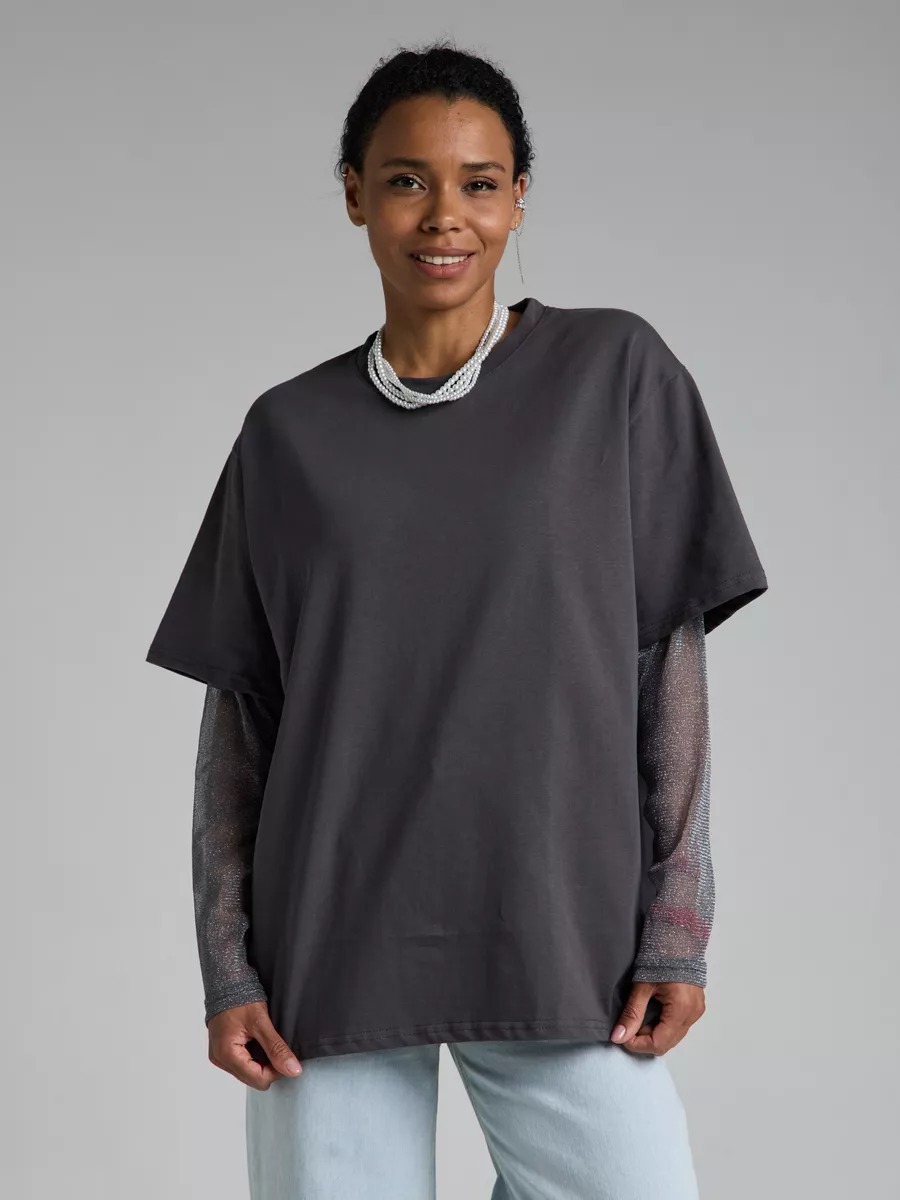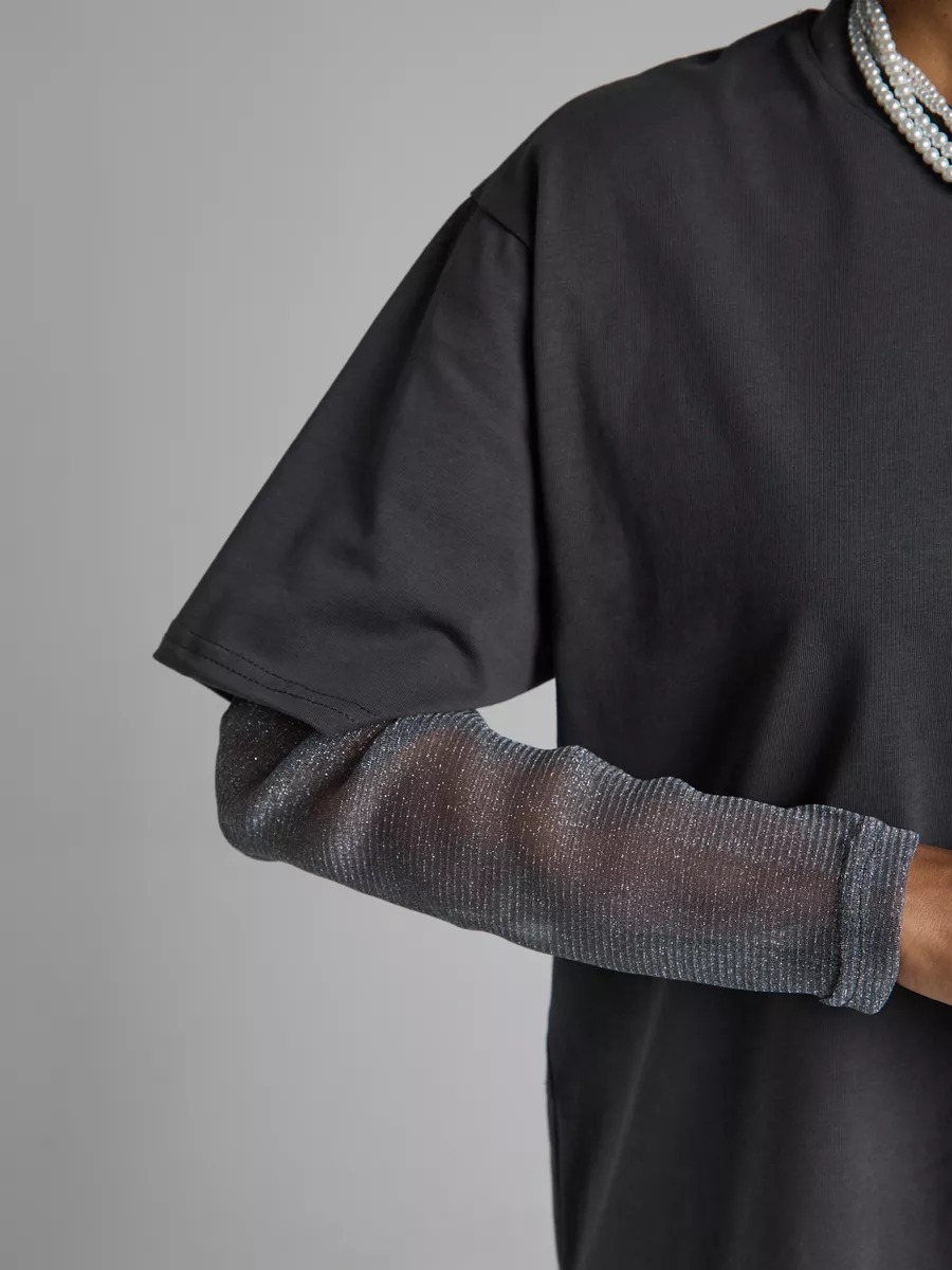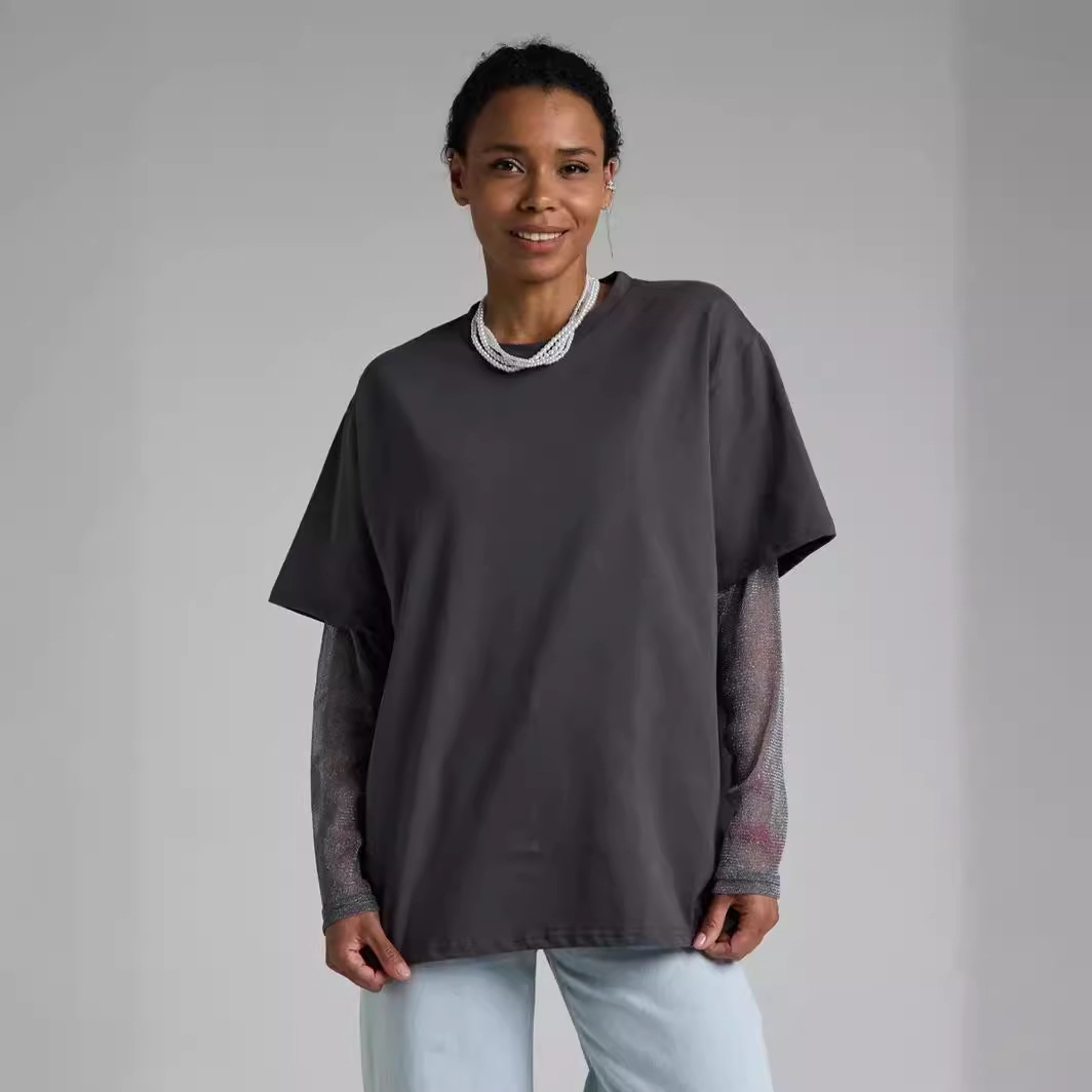 Athvotar Athvotar Summer New Bright Silk Mesh Splicing Long-Sleeved T-Shirt Women Loose Sun Protection Top Hot Sale