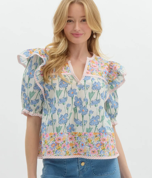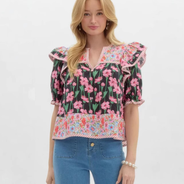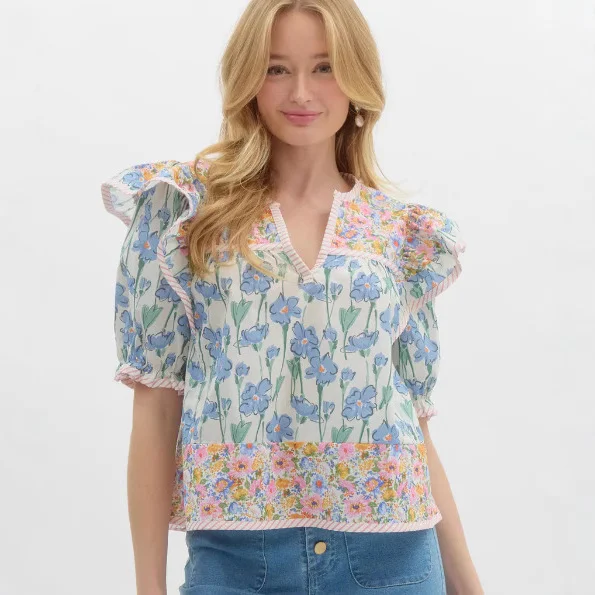 Athvotar Athvotar Summer New Women's Small Fresh Print Flowers Short-Sleeved Leisure Commute OL Top Women's Clothing