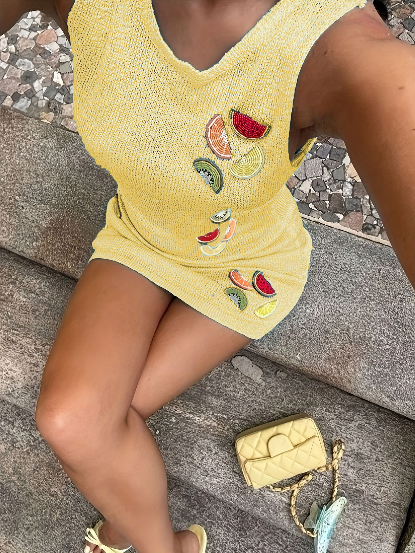 Athvotar Athvotar Summer Sweater Women's Fashion Knitted Fruit Embroidery Slings Short Dress