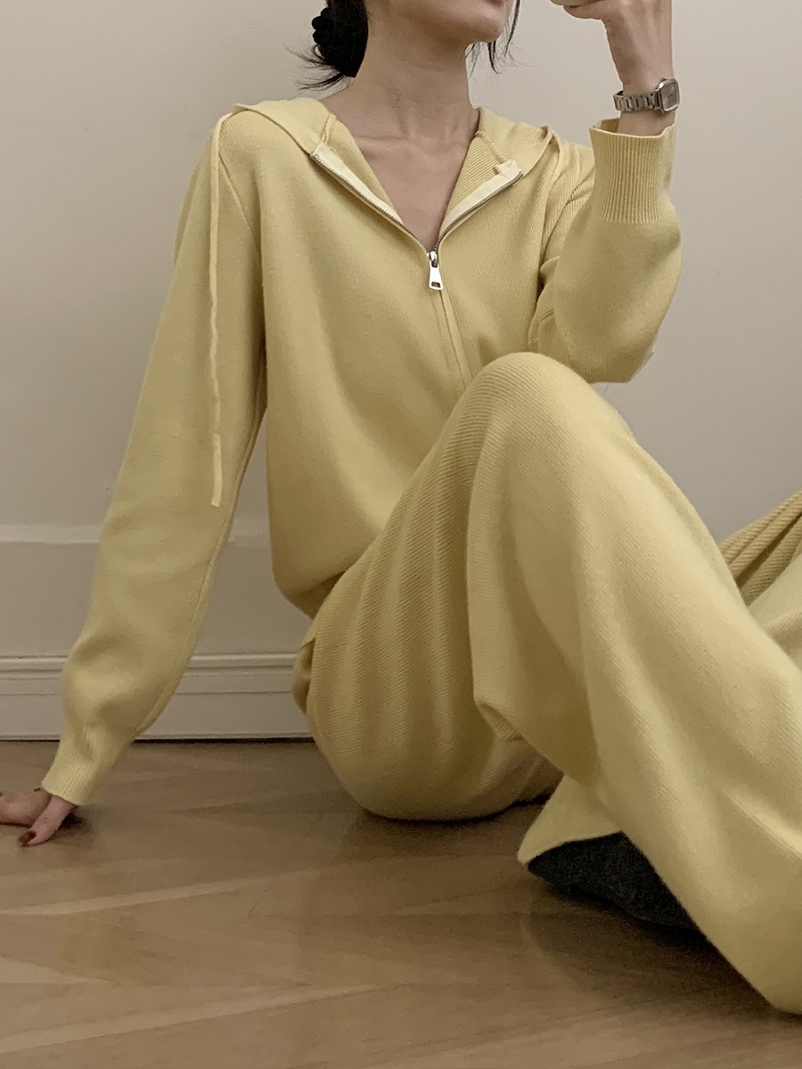 Athvotar Athvotar Sweater Set Women Loose Soft Jacket Sweater Cardigan + Wide Leg Pants Two Sets