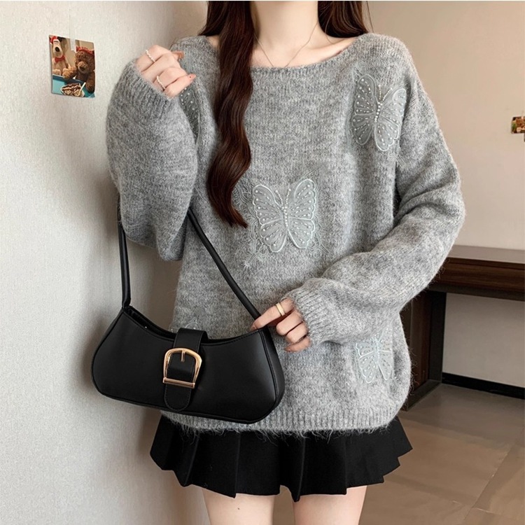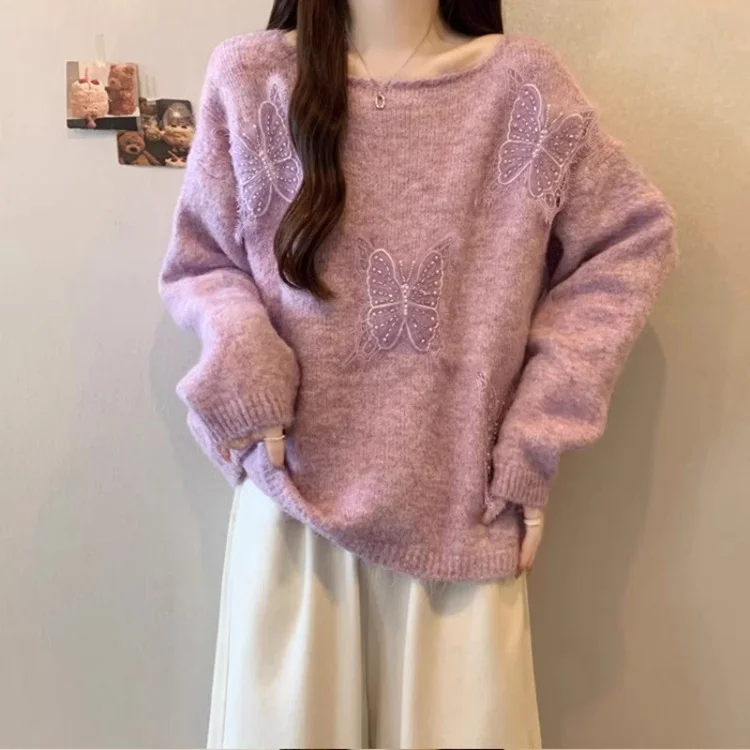 Athvotar Athvotar Three-Dimensional Butterfly Knitted Shirt Lazy Spring And Autumn Collar High-End Sweater Top New Spring And Autumn Winter