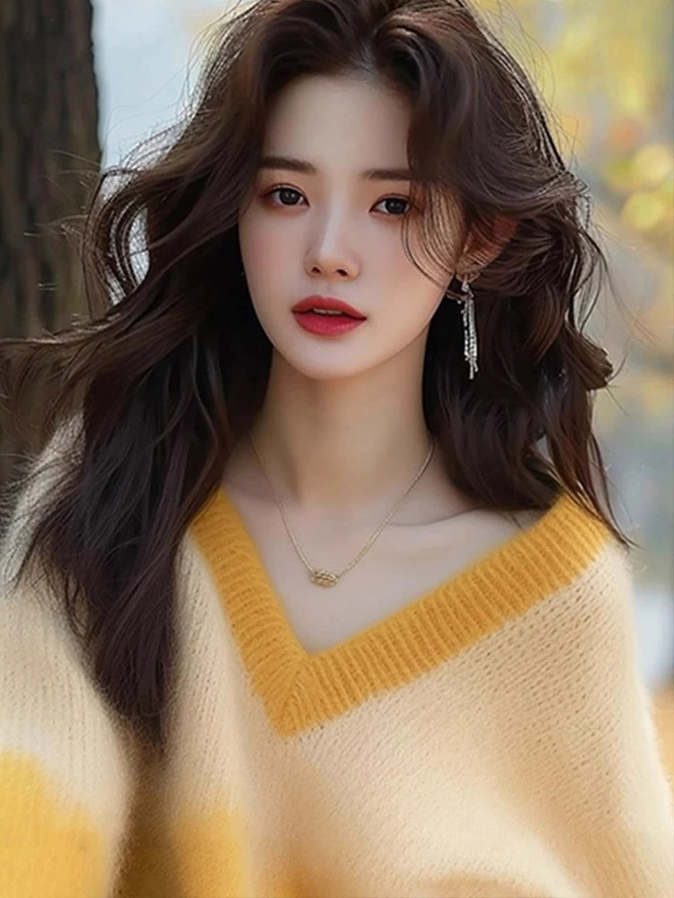Athvotar Athvotar V-Neck Gradient Knitted Jersey Woman 2025 New European Top Temperament Loose Soft Sweater