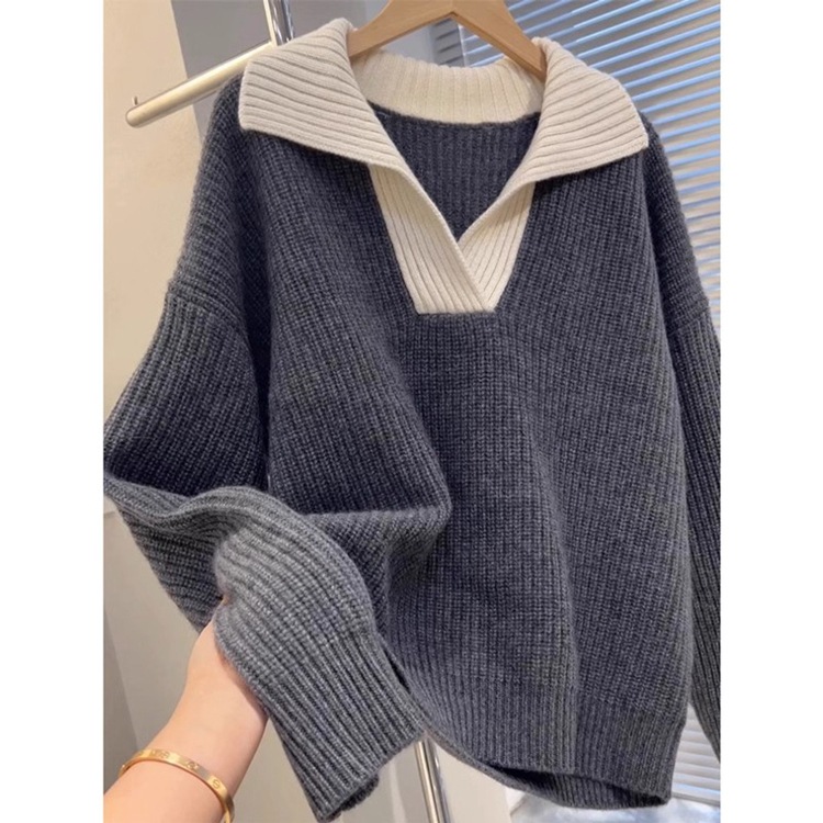 Athvotar Athvotar Version Of Autumn And Winter Breeze High Sense Of The New Bottom Knitted Shirt Languid Jacket Soft-Creinating Sweater Top Coloring Large Size Women's Clothing