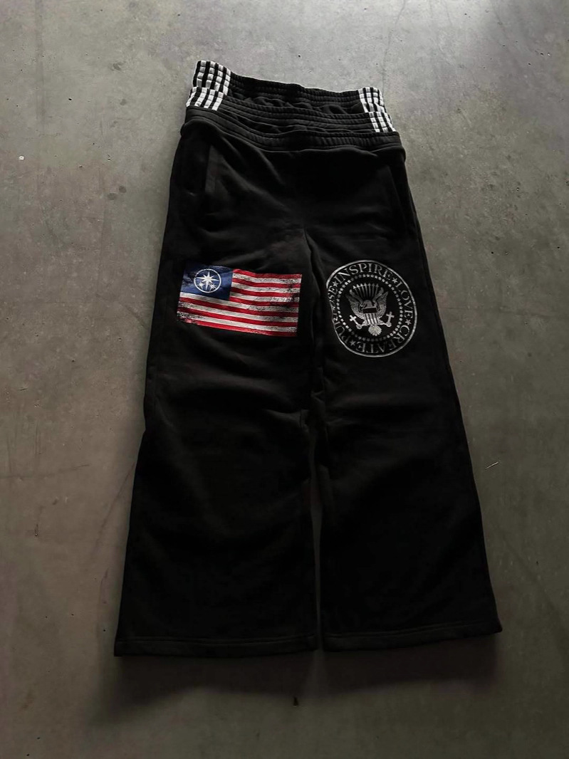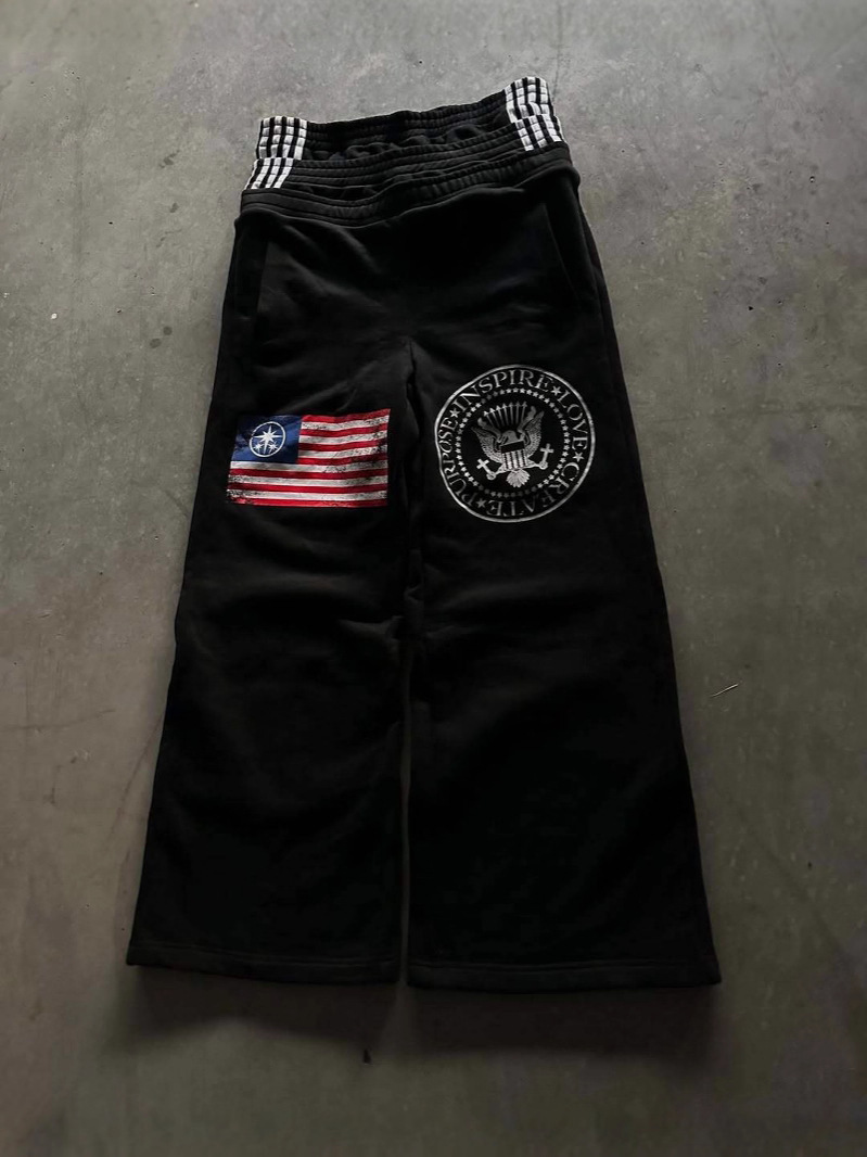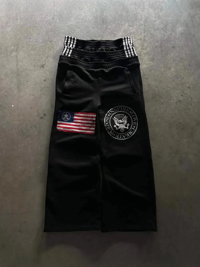 Athvotar Athvotar Waist New Trendy Broad Leg Trousers New Letter Embroidery Street Style Fashion Personality