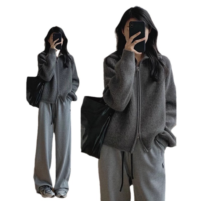 Athvotar Athvotar Woman Retro Hong Kong Flavor New Chic Korean Version Of The Collar Zipper Knitted Open Shirt Lazy Wind Loose Thick Coat
