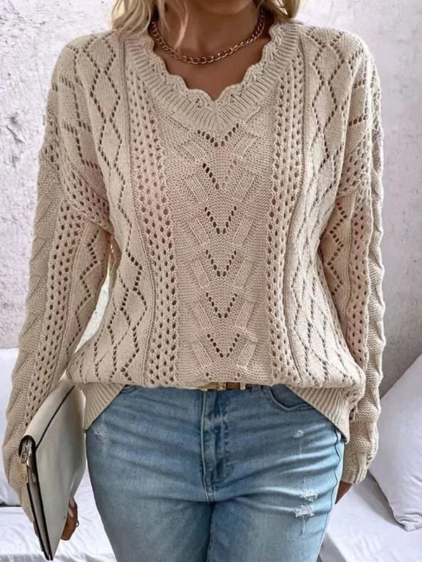 Athvotar Athvotar Women's Sweater Knitted Shirt Design Hollow V-Neck Long-Sleeved Hooded Top