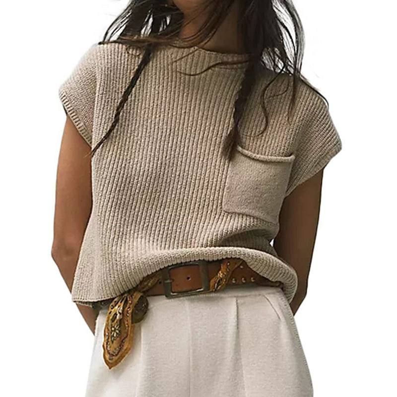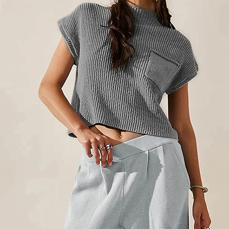 Athvotar Athvotar Wool Vest Sleeveless Pocket Casual Fashion Ribs Vest Woman
