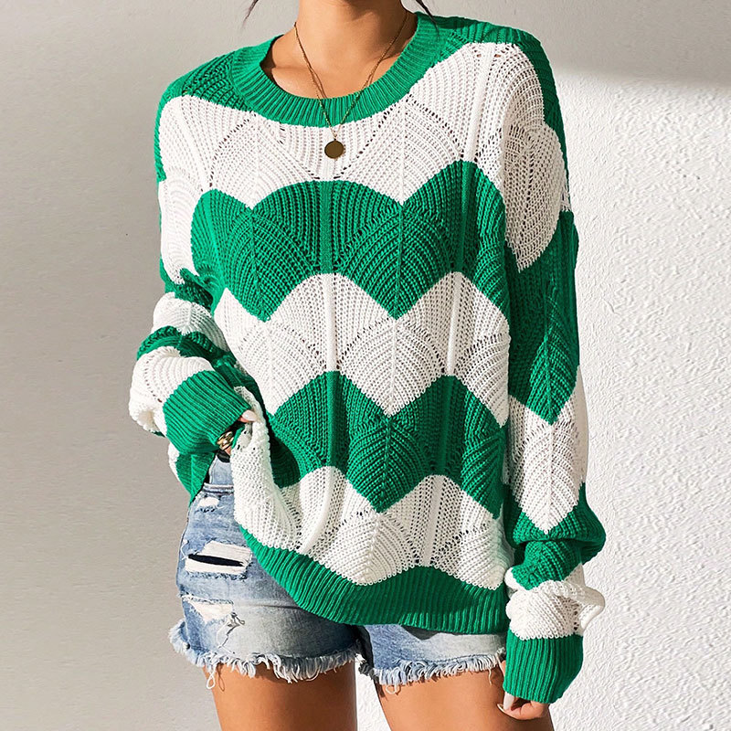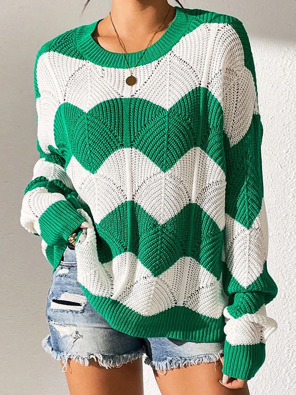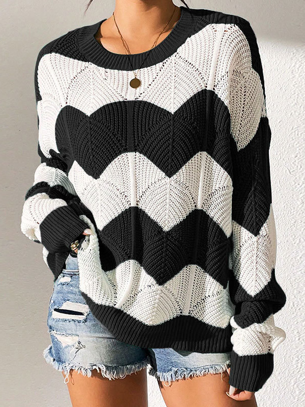 Athvotar Athvotar Yang Autumn New Fur Women's Loose Round Collar Hit The Striped Long-Sleeved Knitted Shirt Top