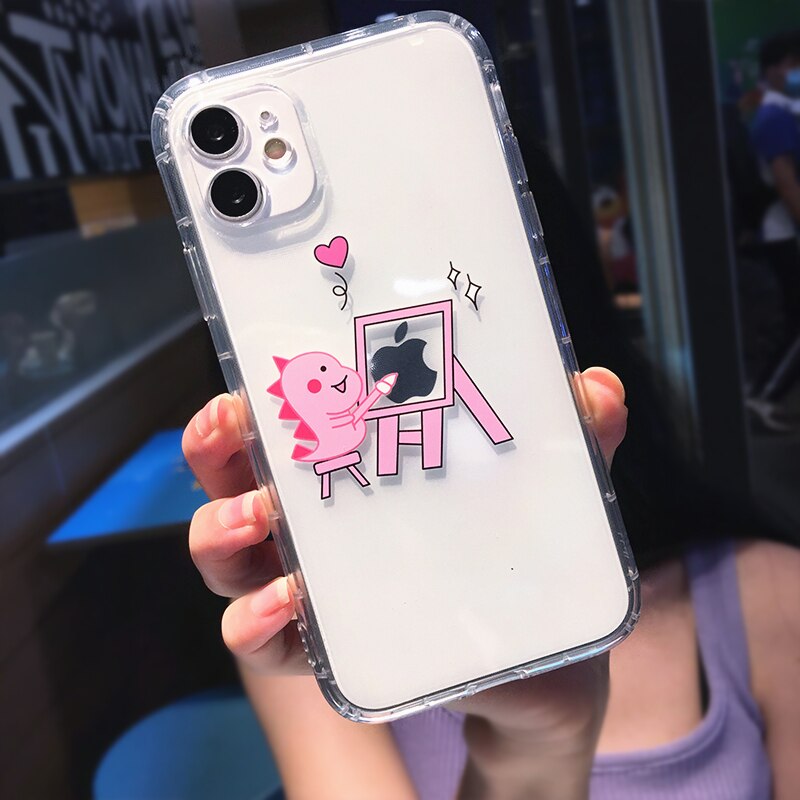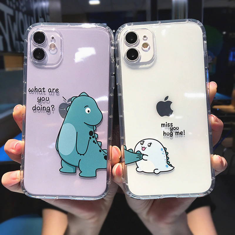 Athvotar Cartoon Animal Dinosaur Couple Phone Case For iPhone 11 Pro Max X XS XR 7 8 plus 12 Mini Transparent Soft Shockproof Cover