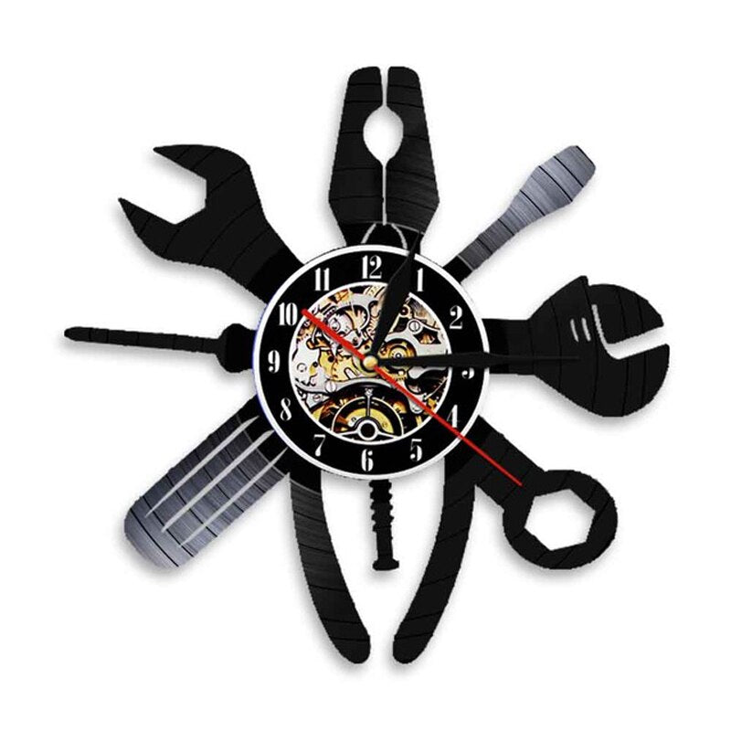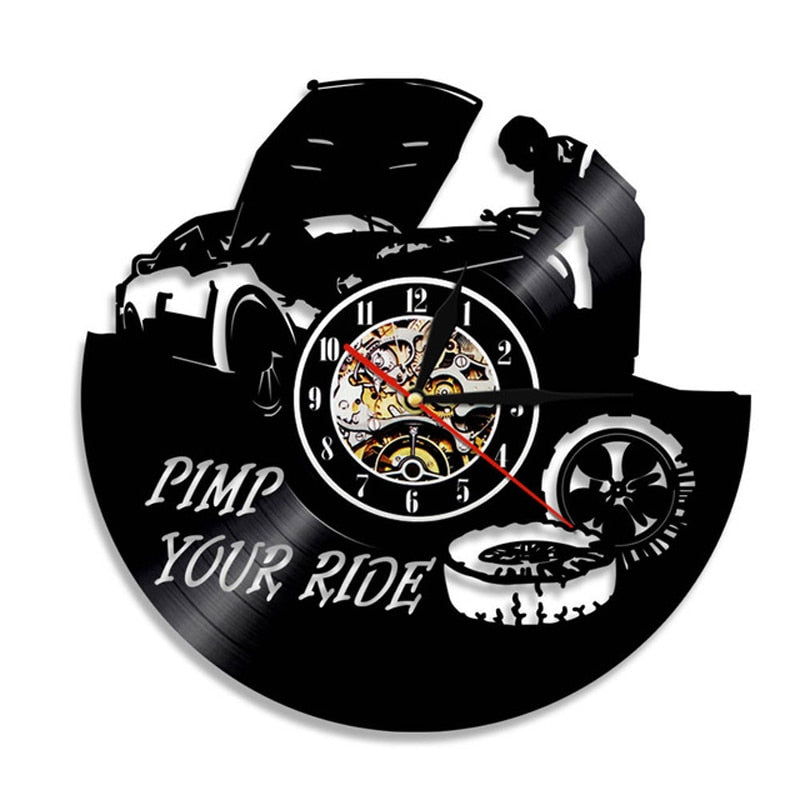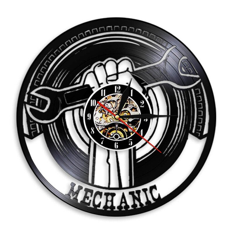 Auto Repair Shop Wall Clock Modern Design Car Mechanic Service Vinyl Record Clocks with 7 Colors LED Wall Watch Home Decor