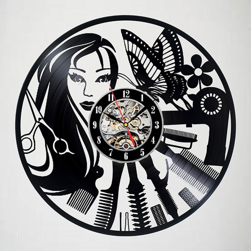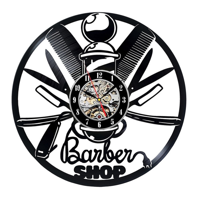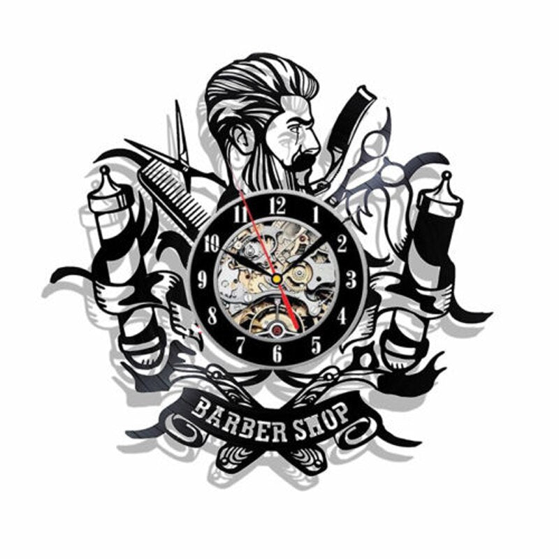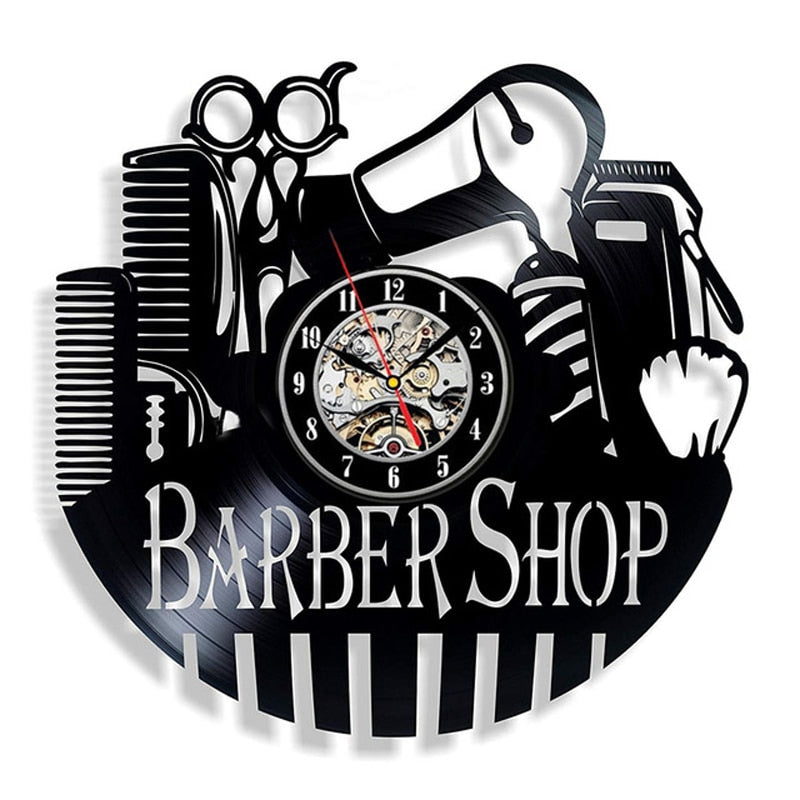 Barber Shop Wall Clock Modern Barbershop Decoration Vinyl Record Wall Clock Hanging Hairdresser Wall Watch for Barber Salon