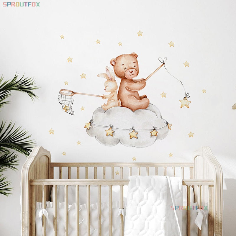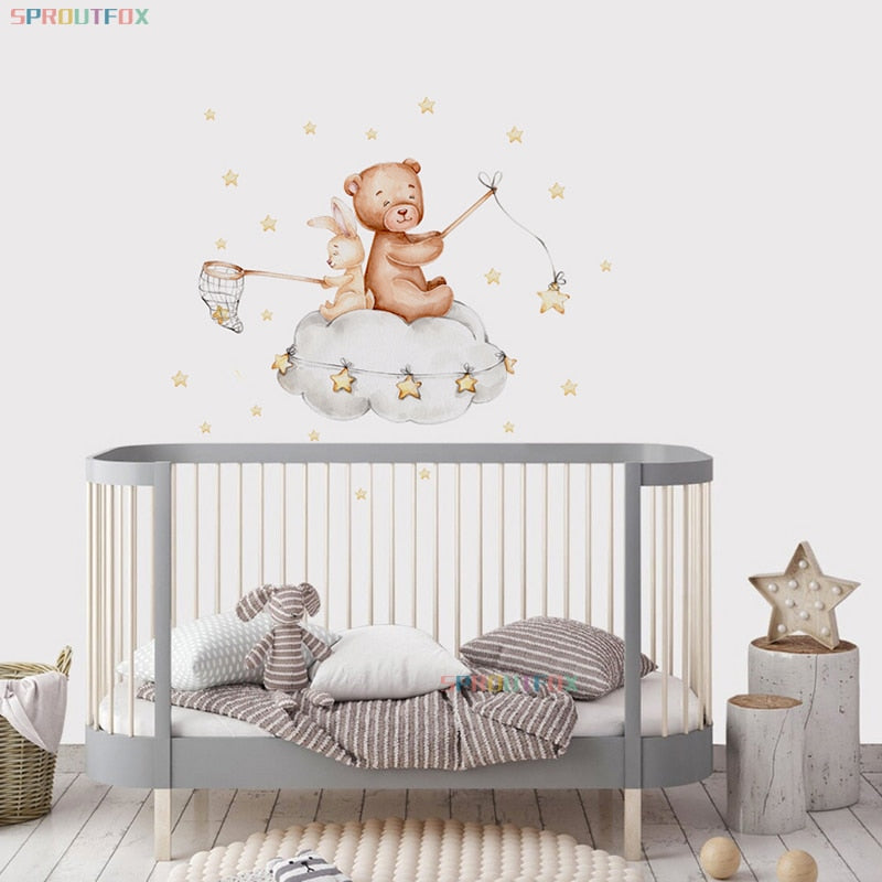 Bear And Rabbit Wall Stickers For Kids Rooms Animals Wall Stickers Child PVC Wall Decorative Vinyl For Children's Room