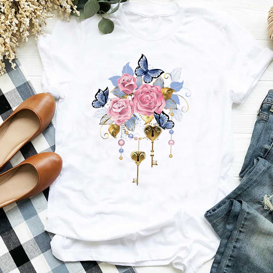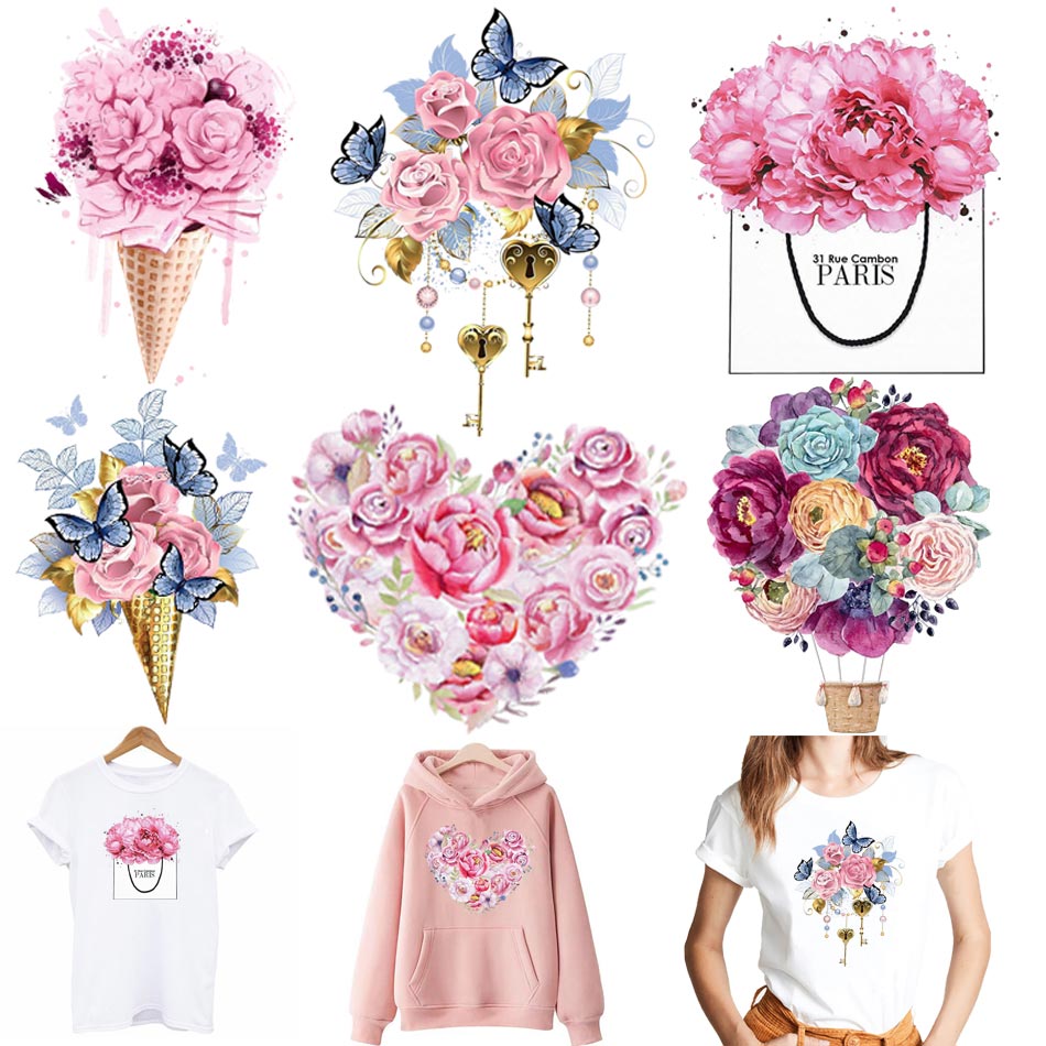 Beautiful Flowers Thermal Sticker On T-shirt DIY Washable Iron On Transfer For Clothing Funny Design Patches On Clothes Applique