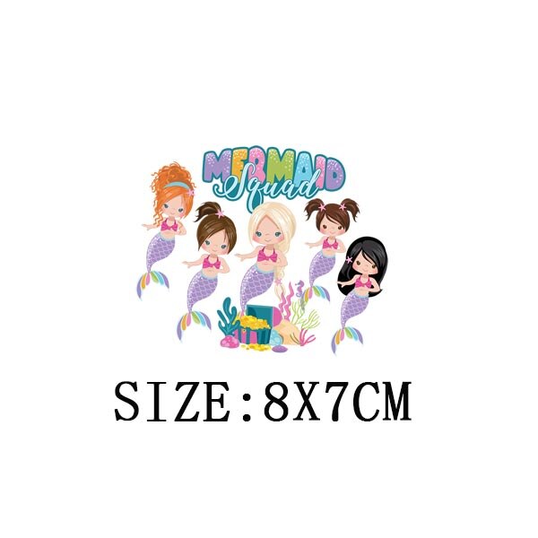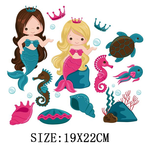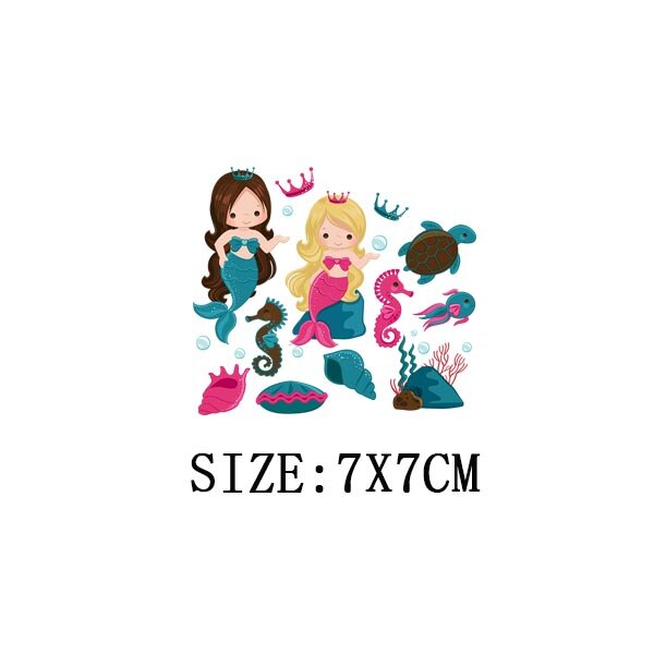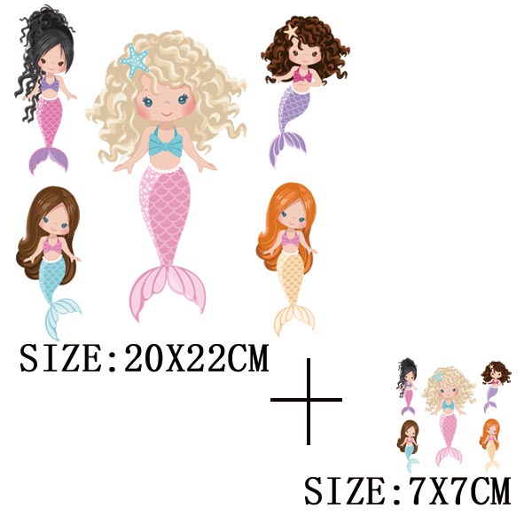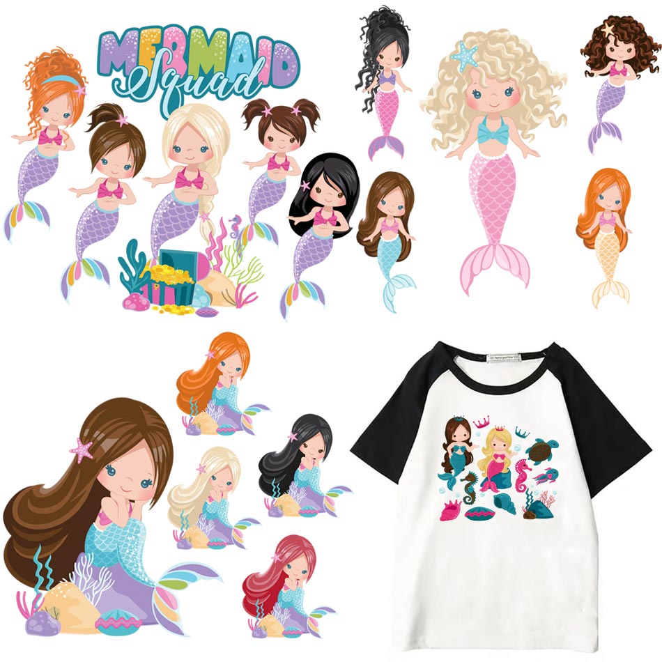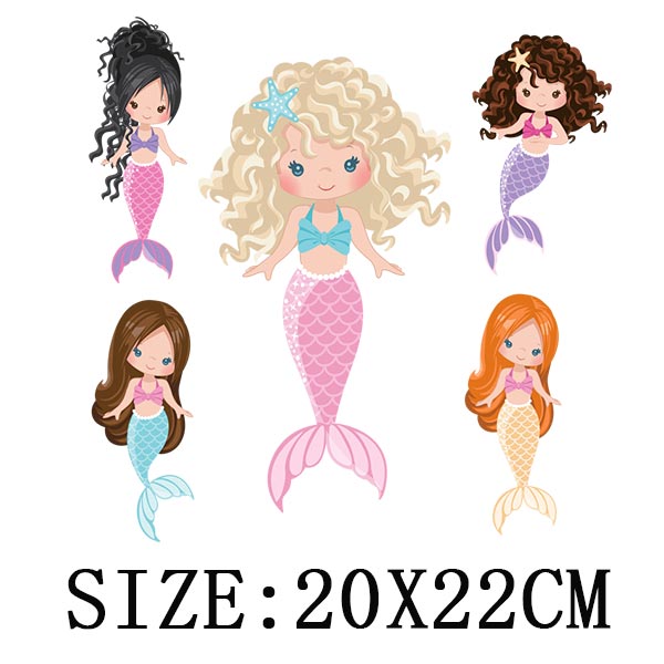 Beautiful Mermaid Thermal Stickers On T-shirt Bag DIY Washable Patches Cute Design Iron On Transfers For Clothes Appliqued Decor