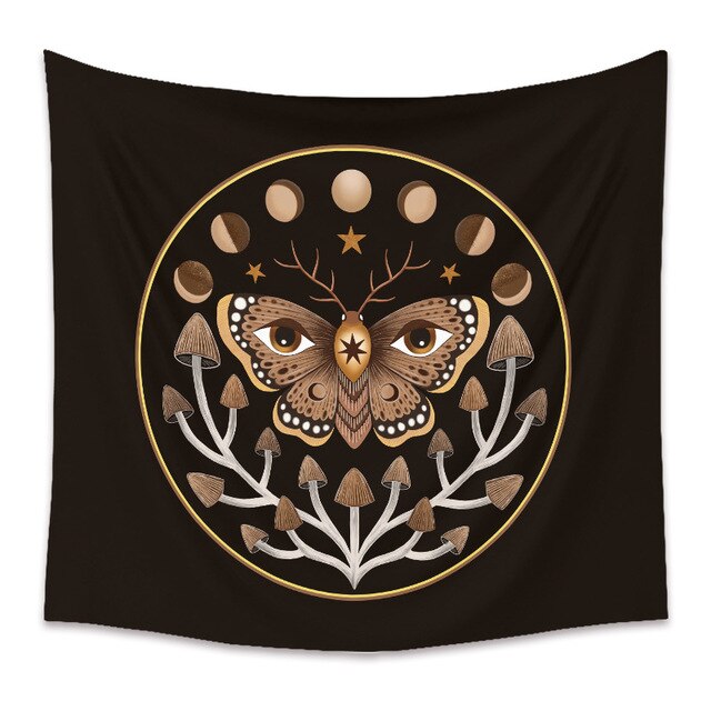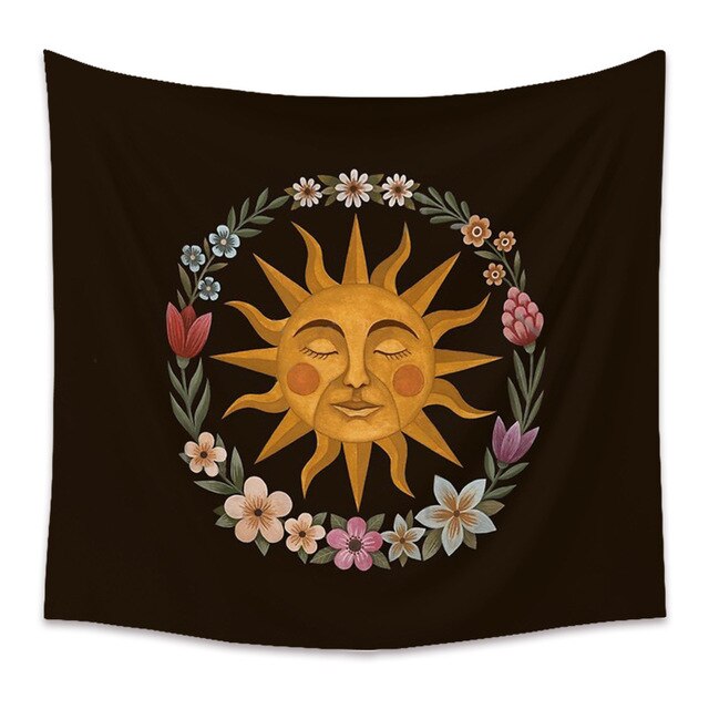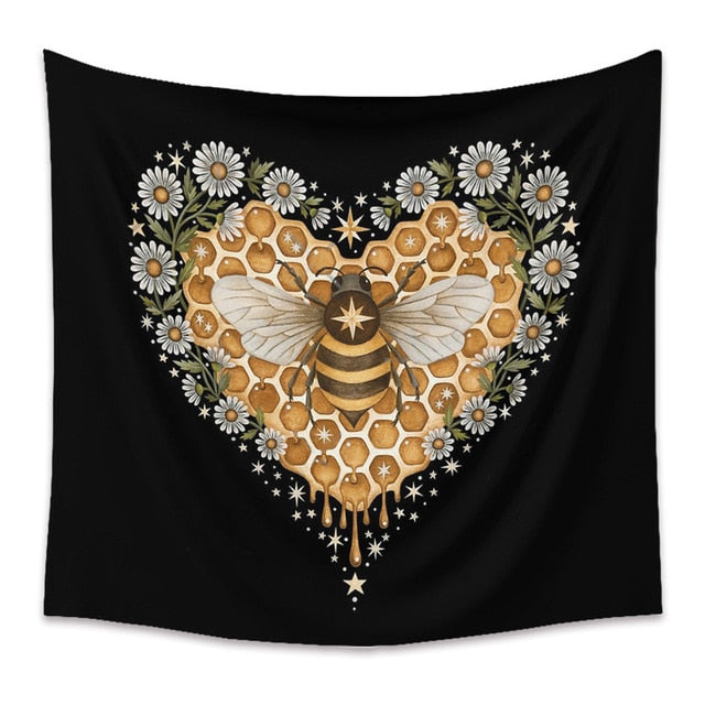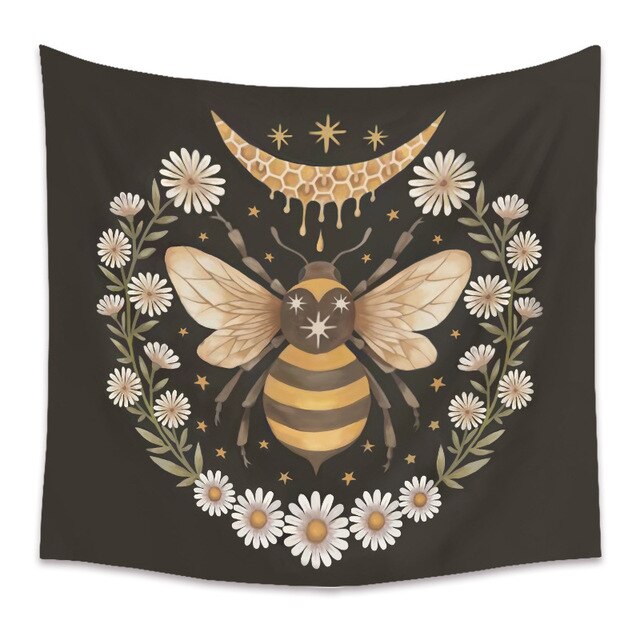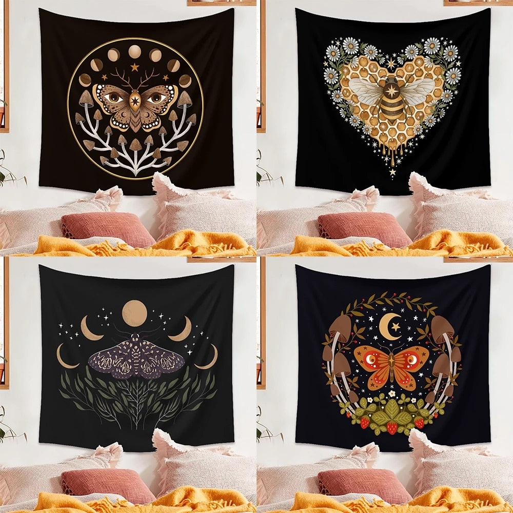 Bee Butterfly Flower Plant Tapestry Wall Hanging Black Background Cloth Moon Sun Tapestry For Farmhouse Decoration tapestry
