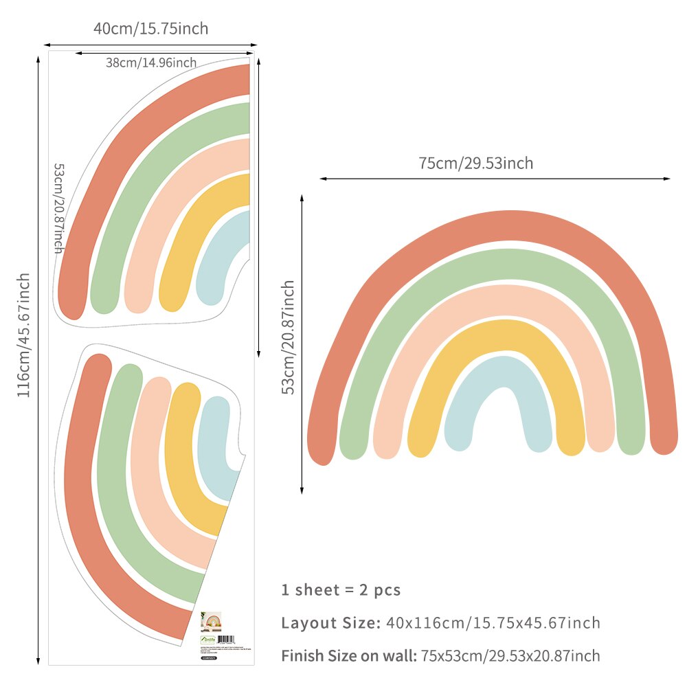 Big Rainbow Watercolour Home Decor Wall Sticker Self-Adhesive for Children's Room Living Room Nursery Decals Nordic Kid Stickers